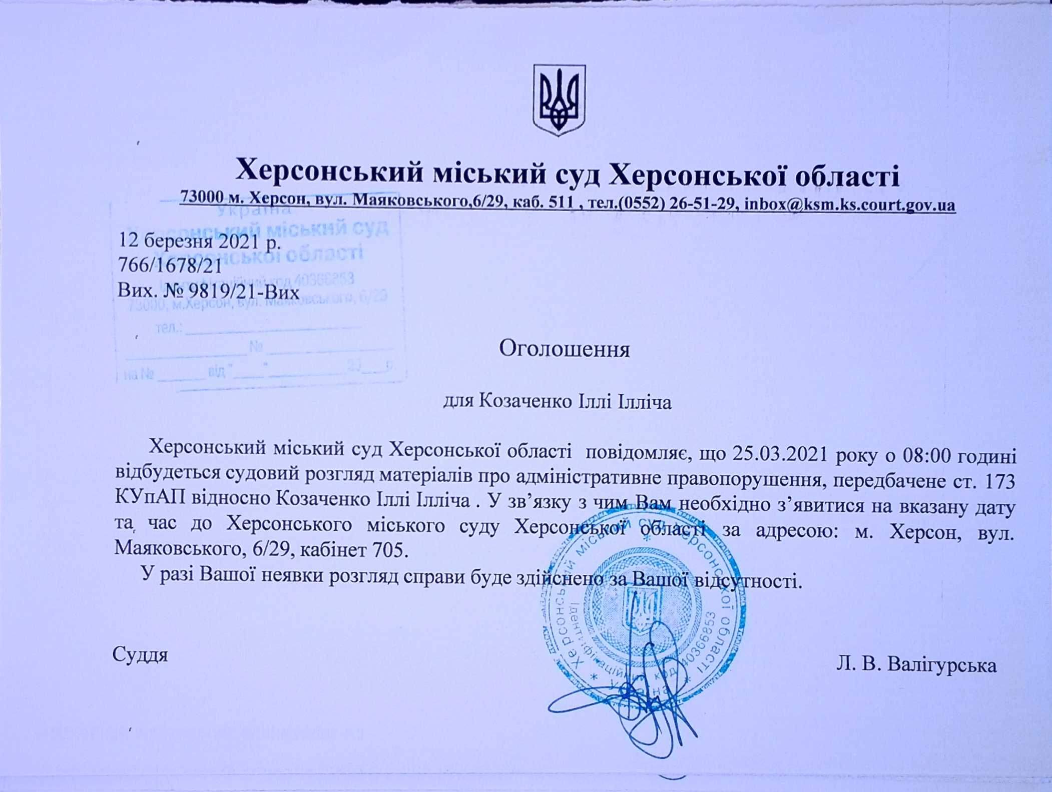 ОГОЛОШЕННЯ ПРО ВИКЛИК ДО СУДУ