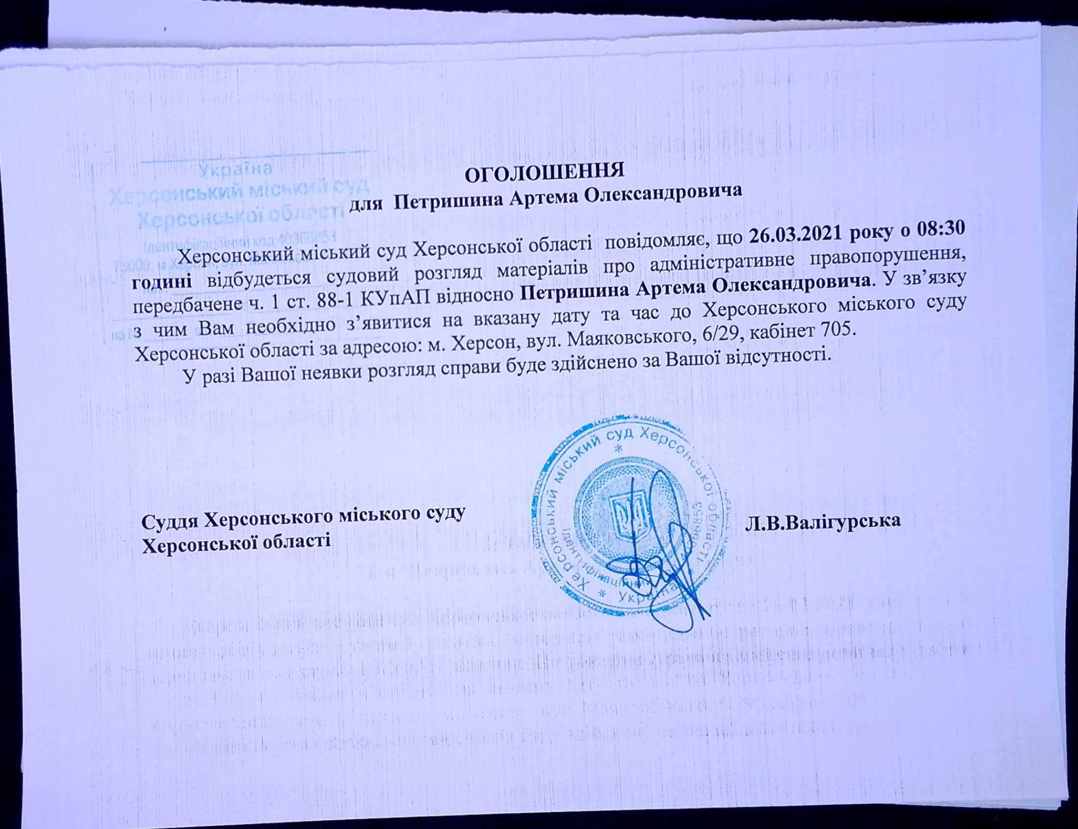 ОГОЛОШЕННЯ для Петришина Артема Олександровича