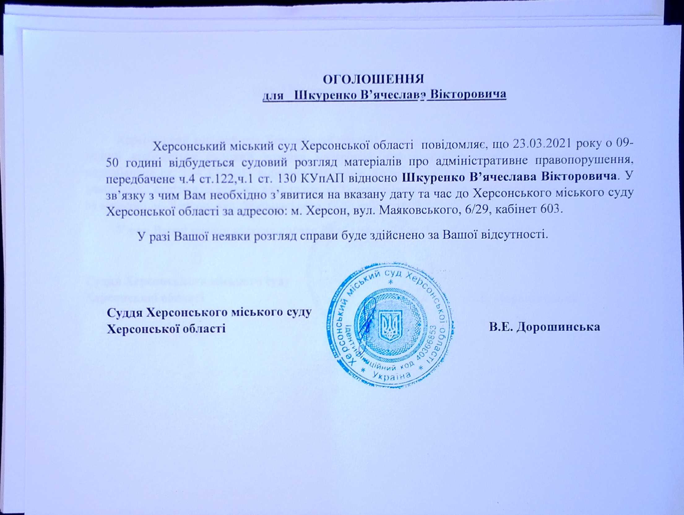 ОГОЛОШЕННЯ ПРО ВИКЛИК ДО СУДУ