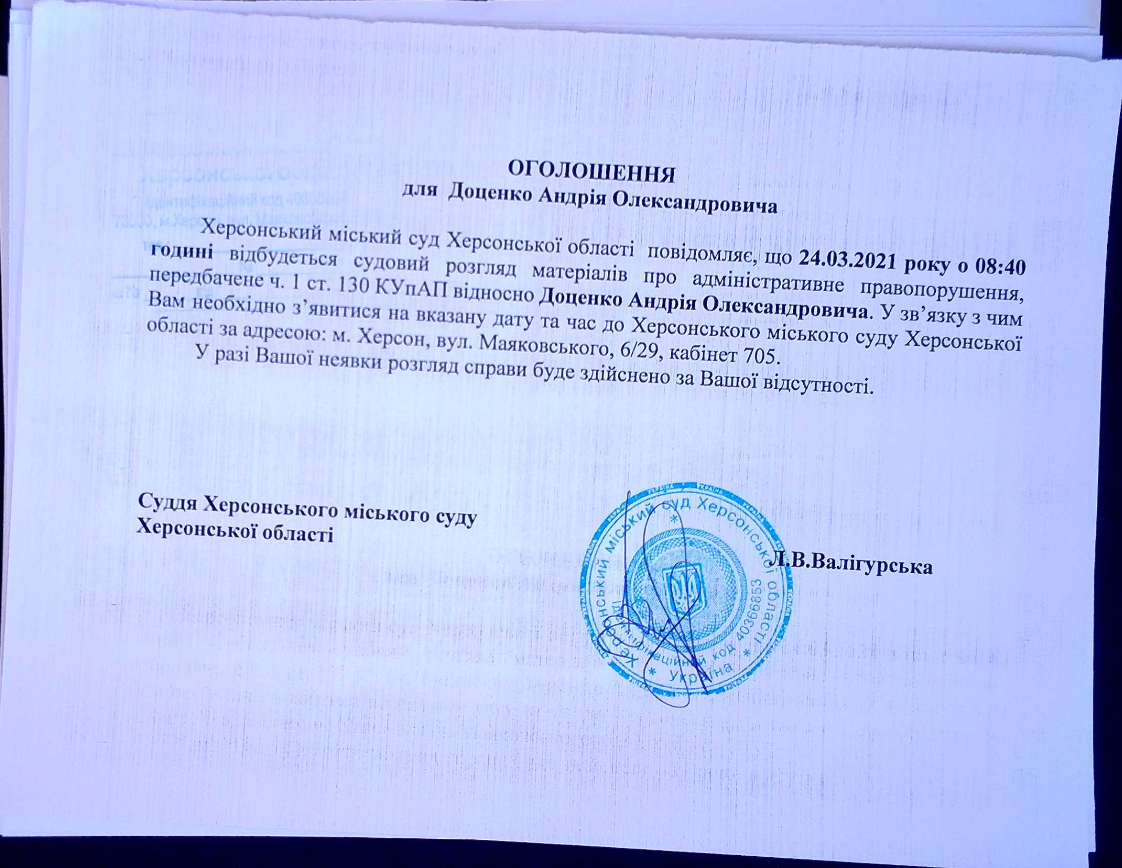 ОГОЛОШЕННЯ для Доценко Андрія Олександровича