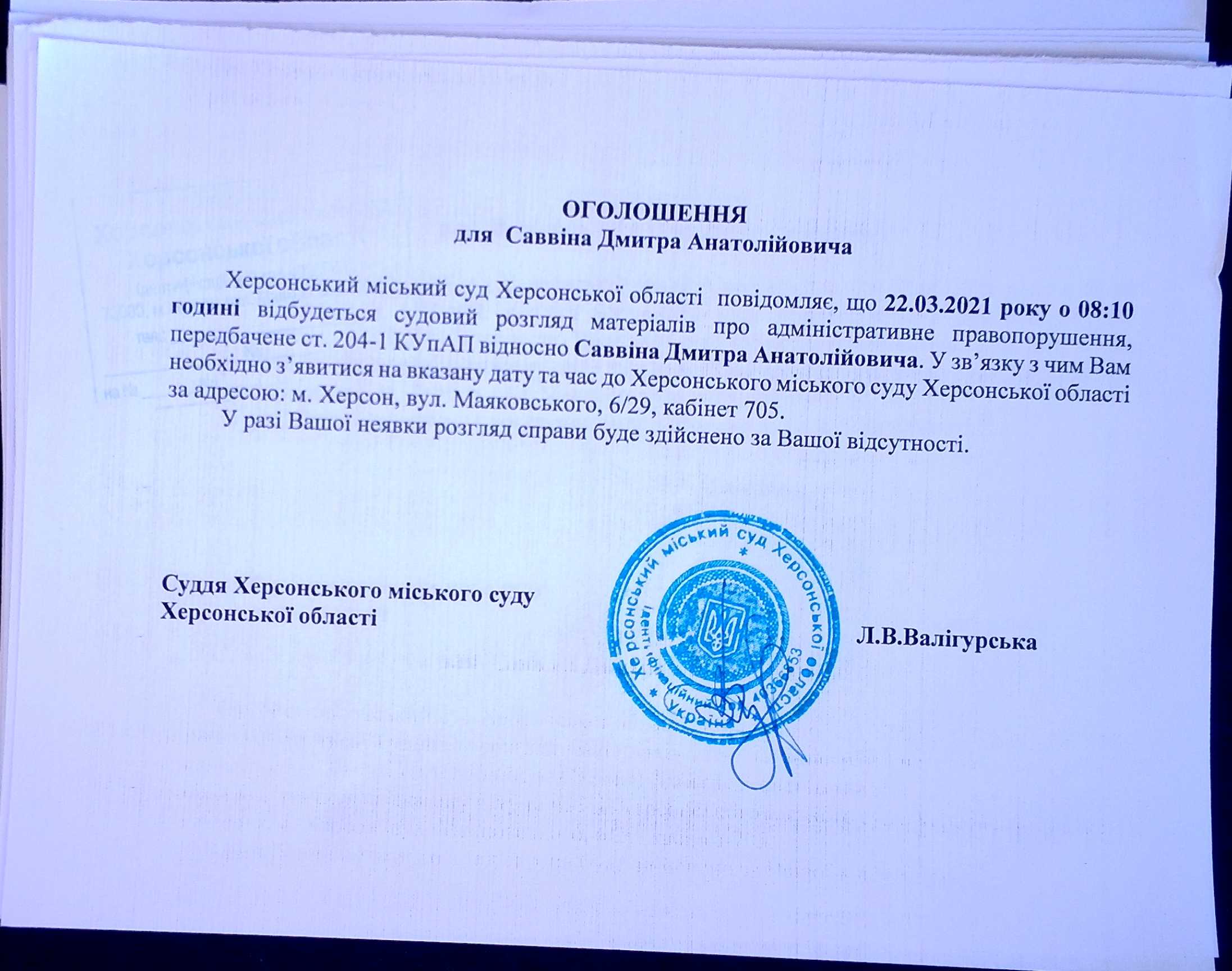 ОГОЛОШЕННЯ ПРО ВИКЛИК ДО СУДУ