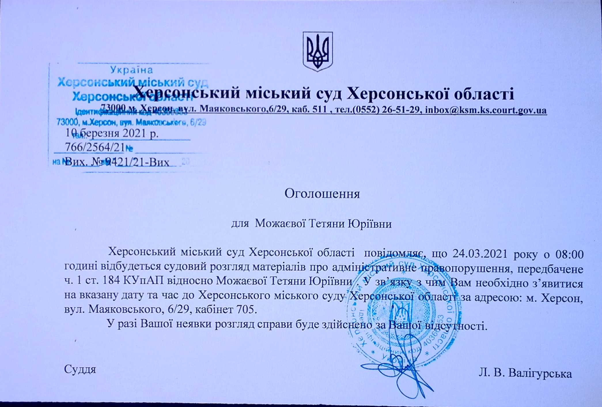 ОГОЛОШЕННЯ для Можаєвої Тетяни Юріївни