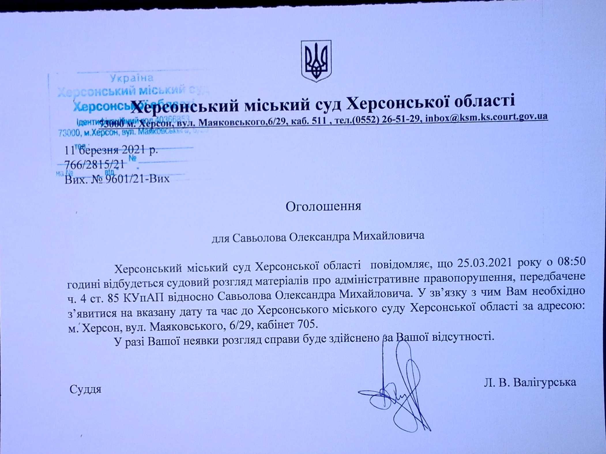 ОГОЛОШЕННЯ для Савьолова Олександра Михайловича