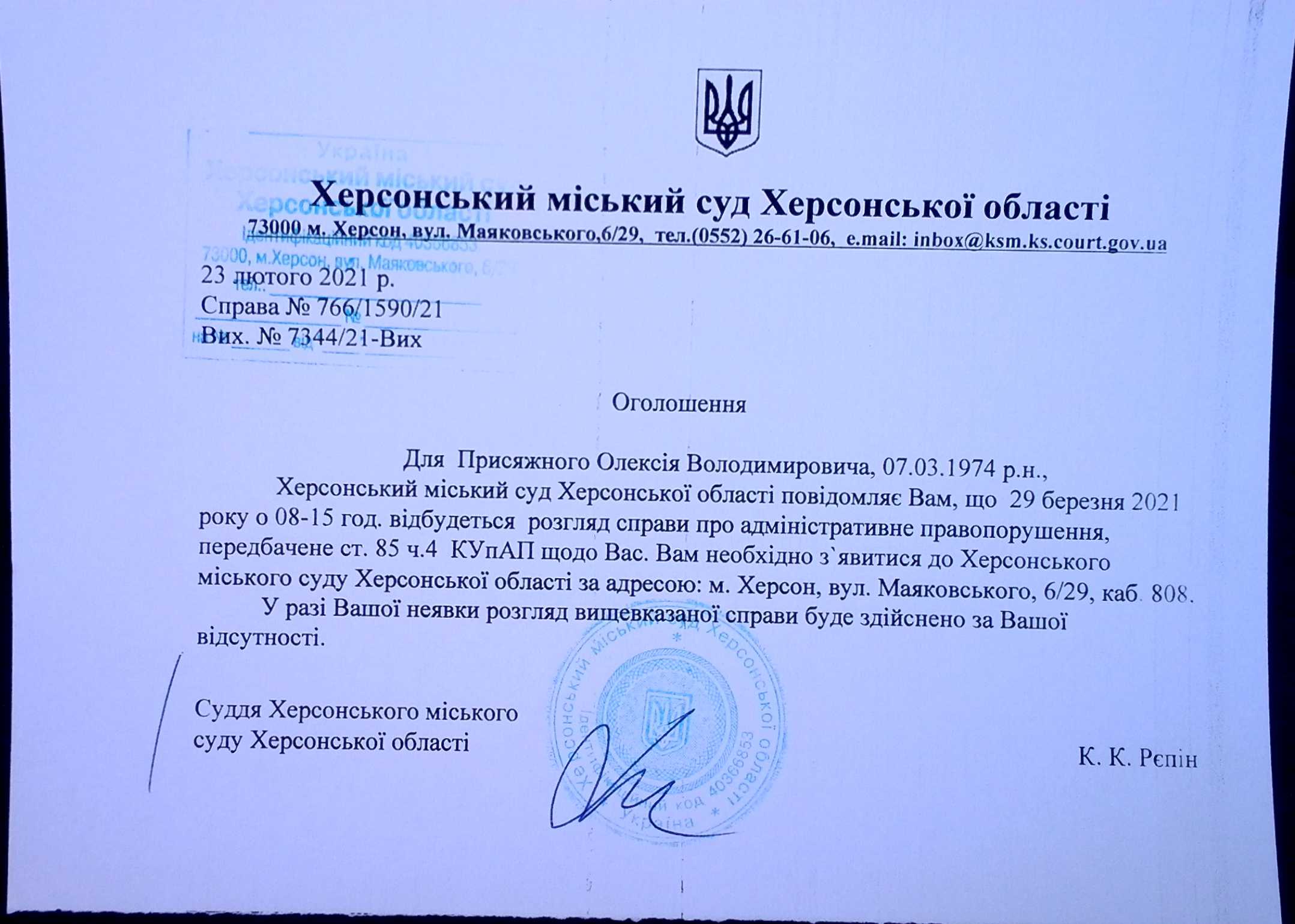 ОГОЛОШЕННЯ ПРО ВИКЛИК ДО СУДУ