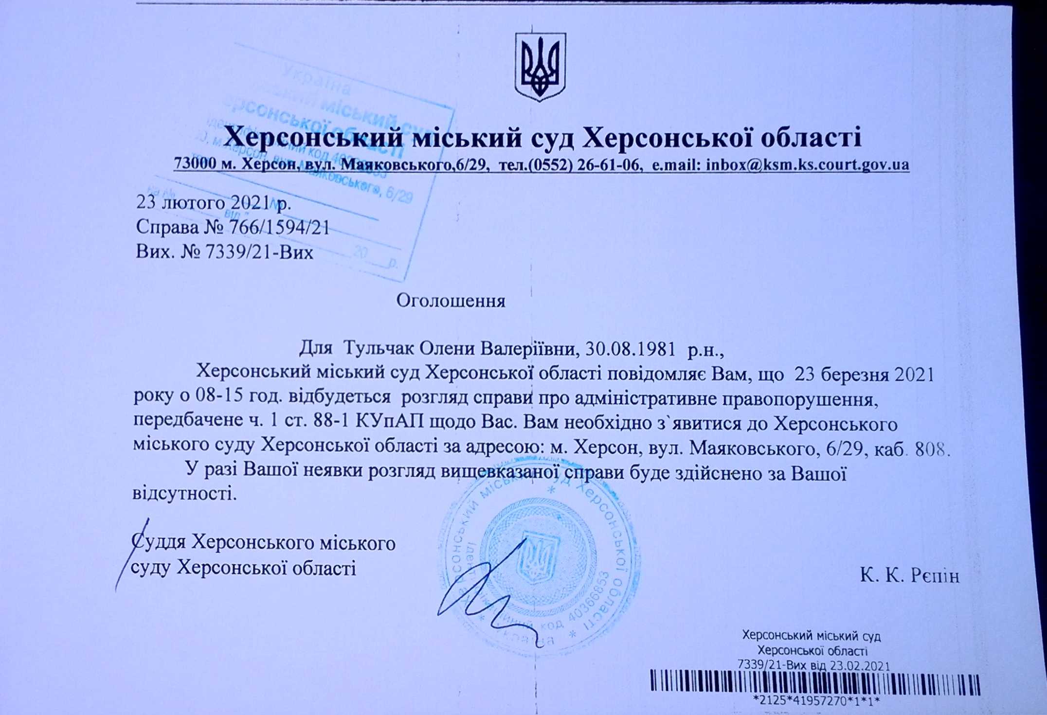 ОГОЛОШЕННЯ ПРО ВИКЛИК ДО СУДУ