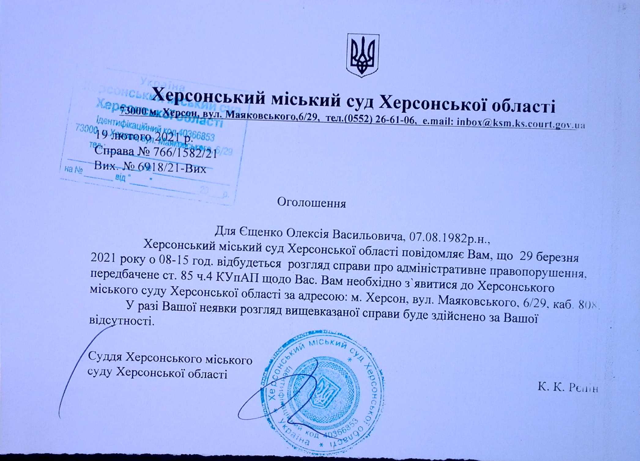 ОГОЛОШЕННЯ ПРО ВИКЛИК ДО СУДУ