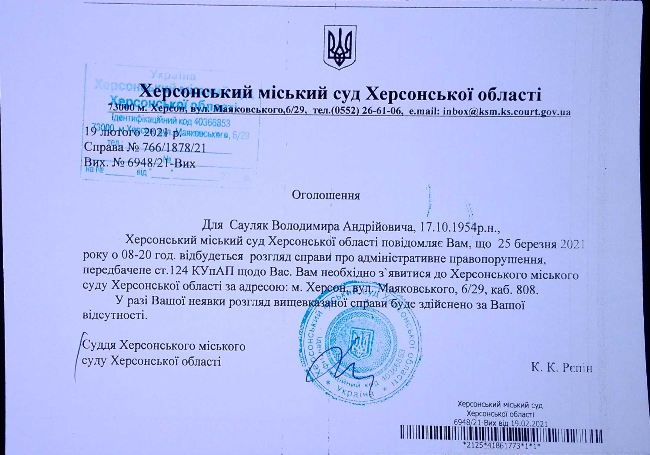 ОГОЛОШЕННЯ ПРО ВИКЛИК ДО СУДУ