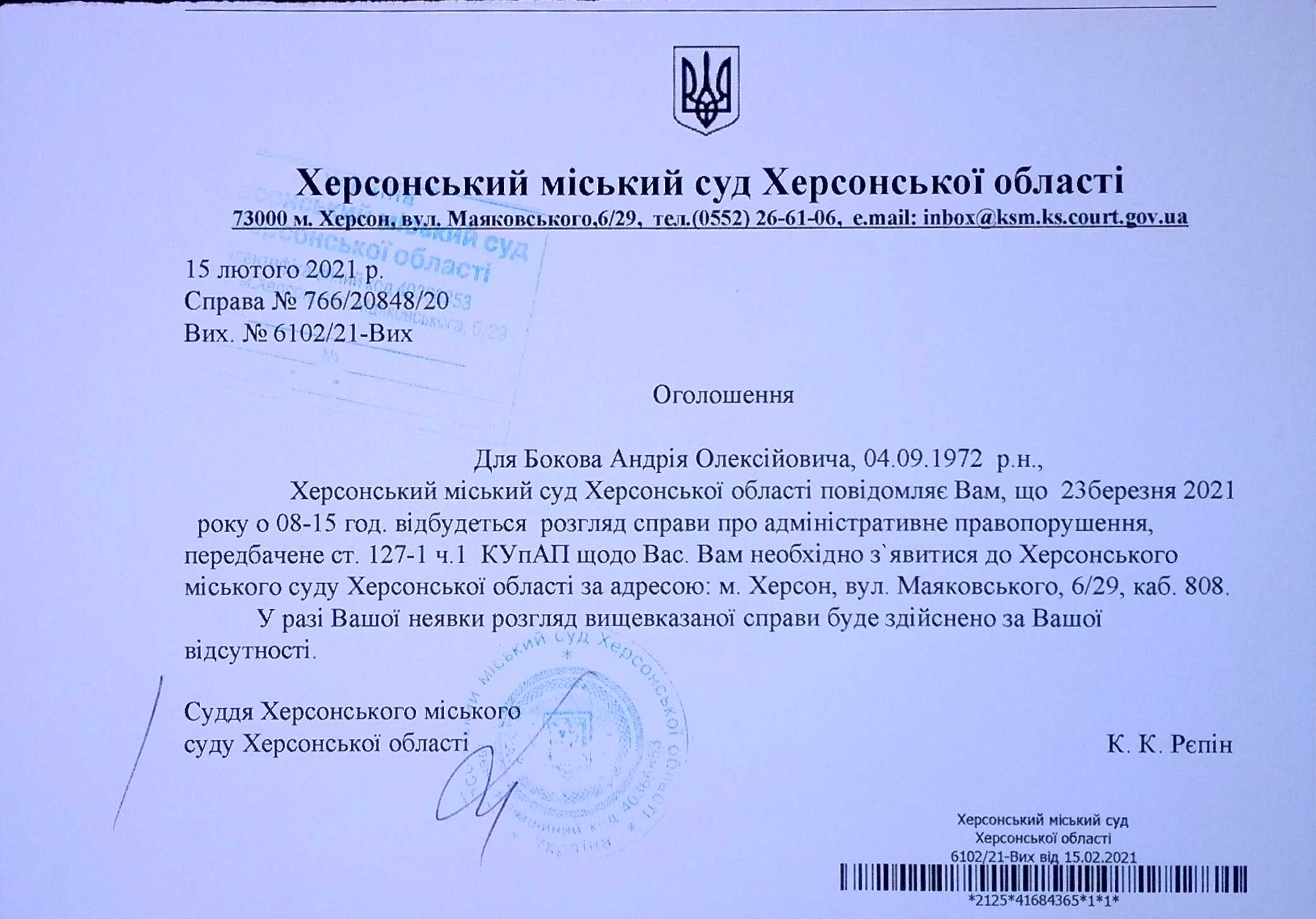 ОГОЛОШЕННЯ для Бокова Андрія Олексійовича
