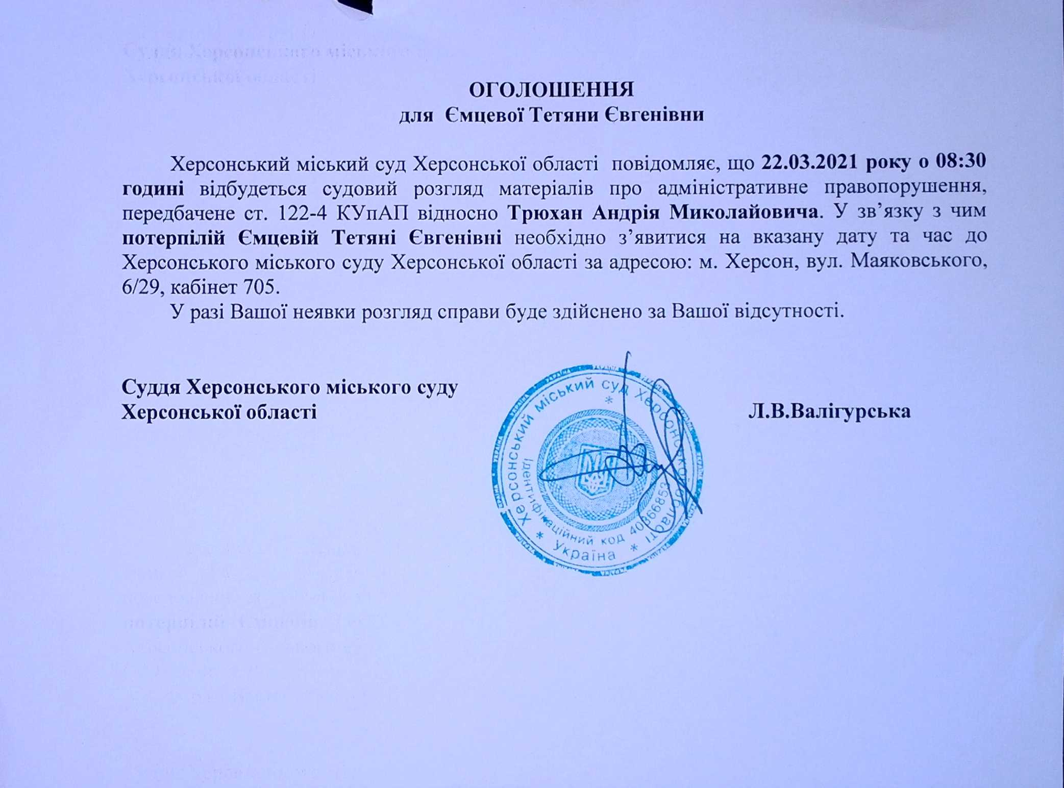 ОГОЛОШЕННЯ ПРО ВИКЛИК ДО СУДУ