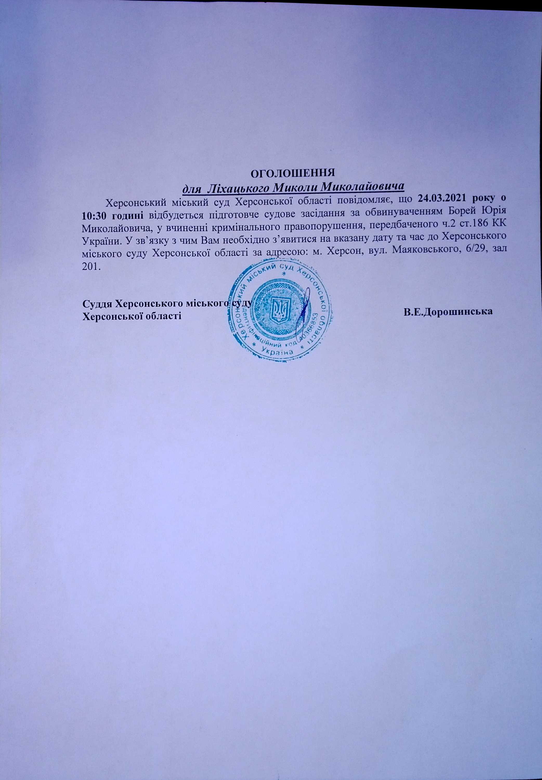 ОГОЛОШЕННЯ для Ліхацького Миколи Миколайовича