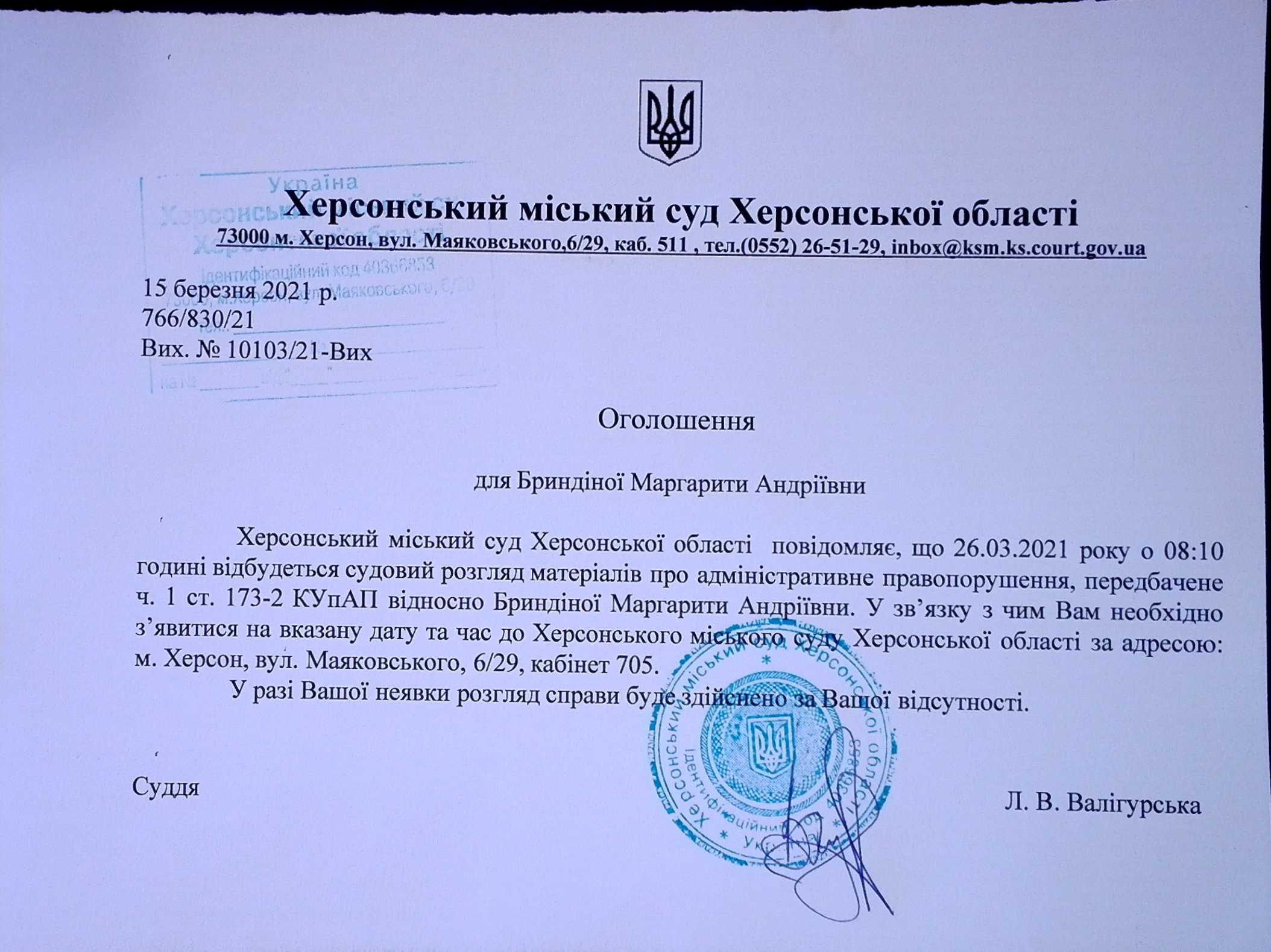 ОГОЛОШЕННЯ ПРО ВИКЛИК ДО СУДУ