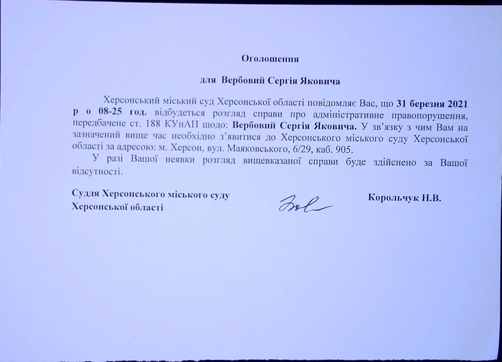 ОГОЛОШЕННЯ ПРО ВИКЛИК ДО СУДУ