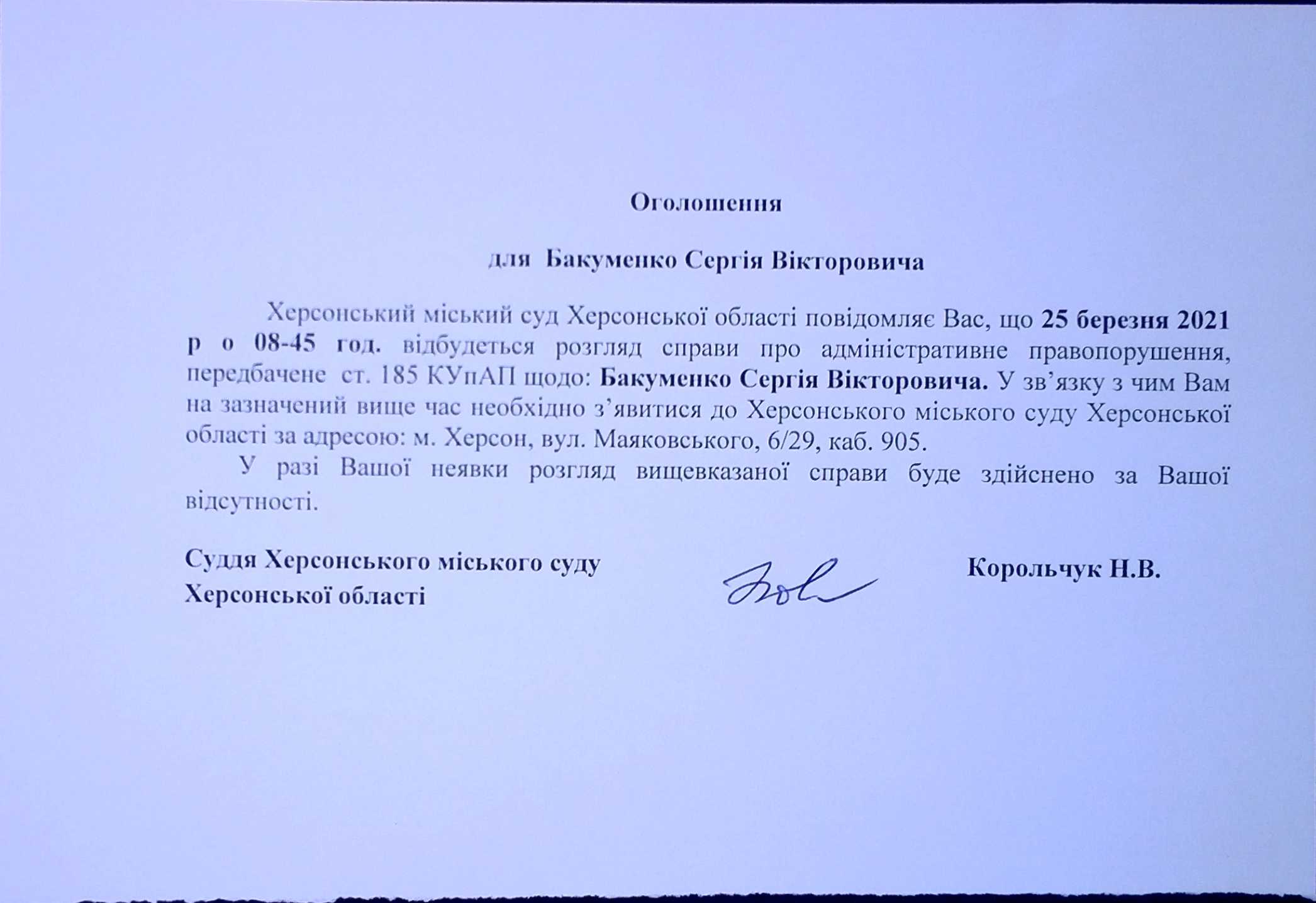 ОГОЛОШЕННЯ для Бакуменко Сергія Вікторовича