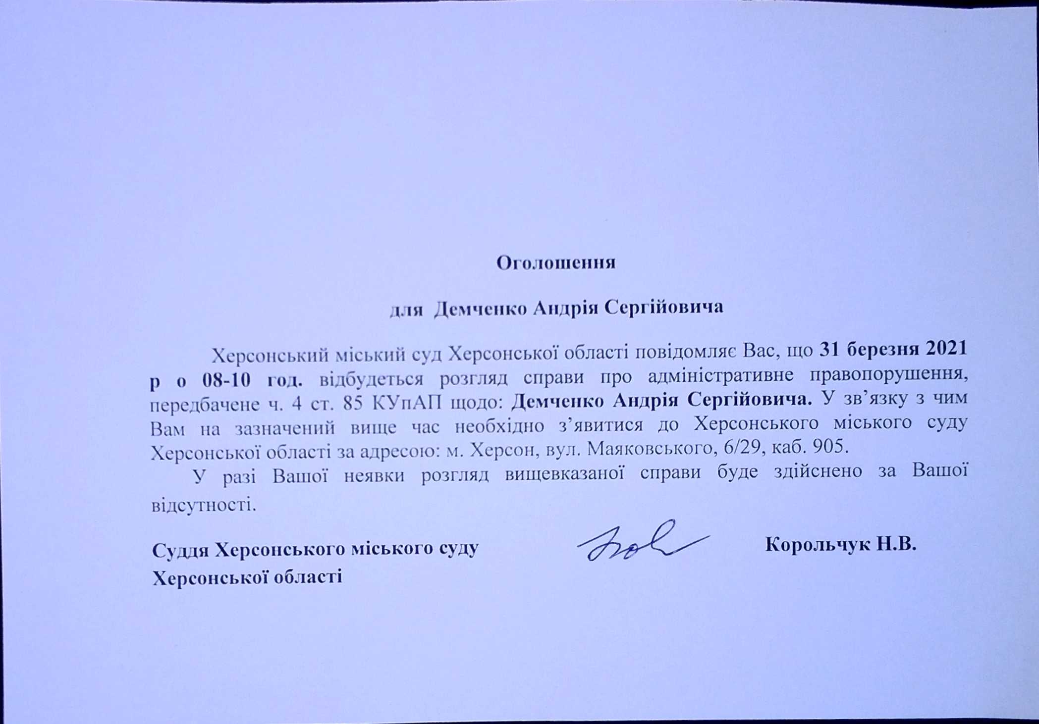ОГОЛОШЕННЯ ПРО ВИКЛИК ДО СУДУ