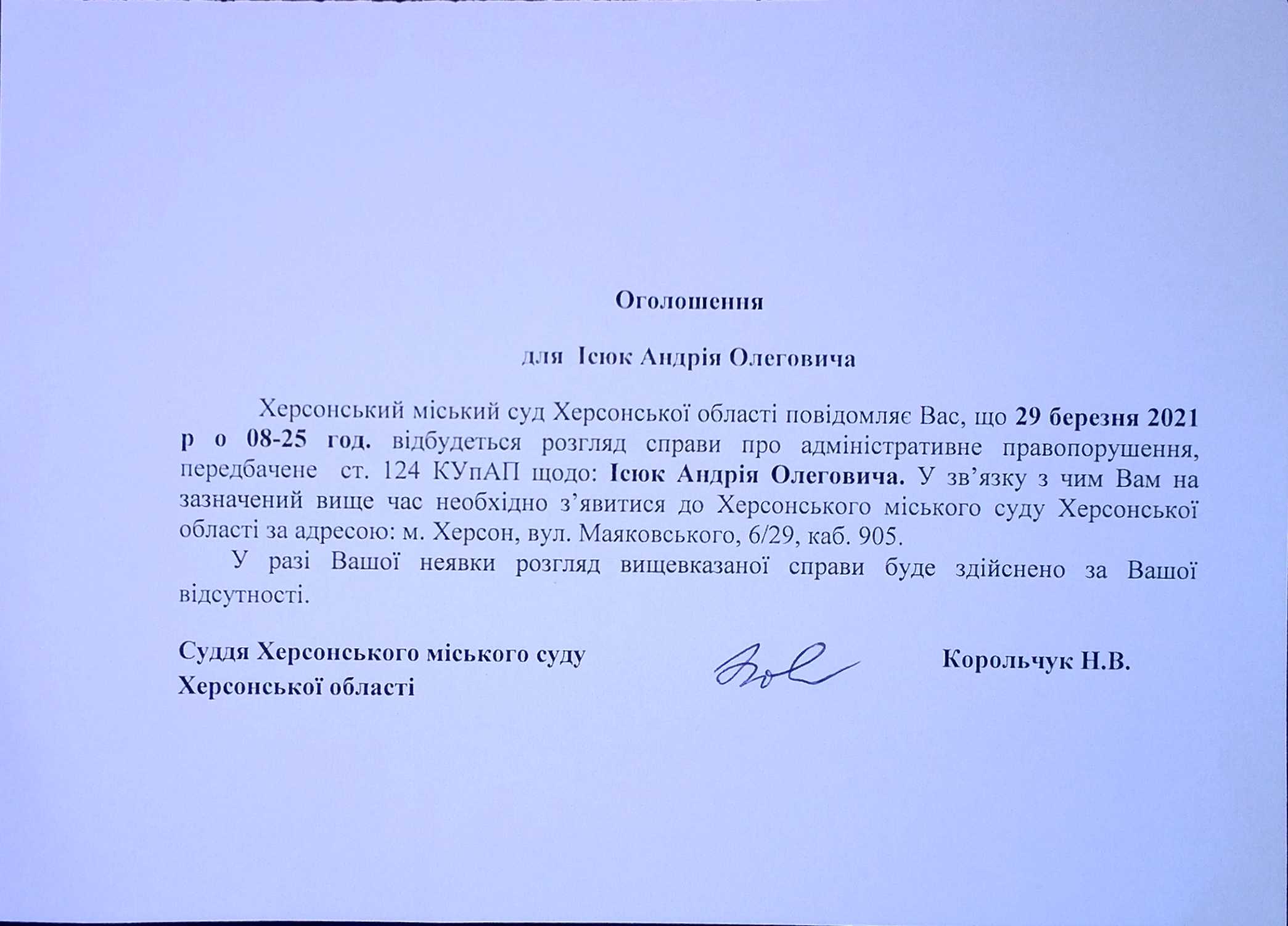 ОГОЛОШЕННЯ для Ісюка Андрія Олеговича