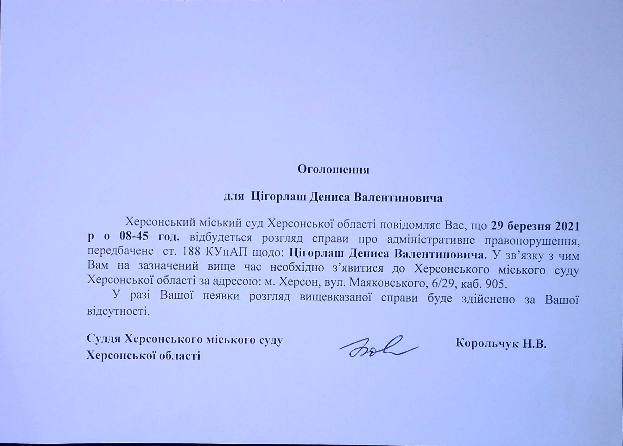 ОГОЛОШЕННЯ ПРО ВИКЛИК ДО СУДУ