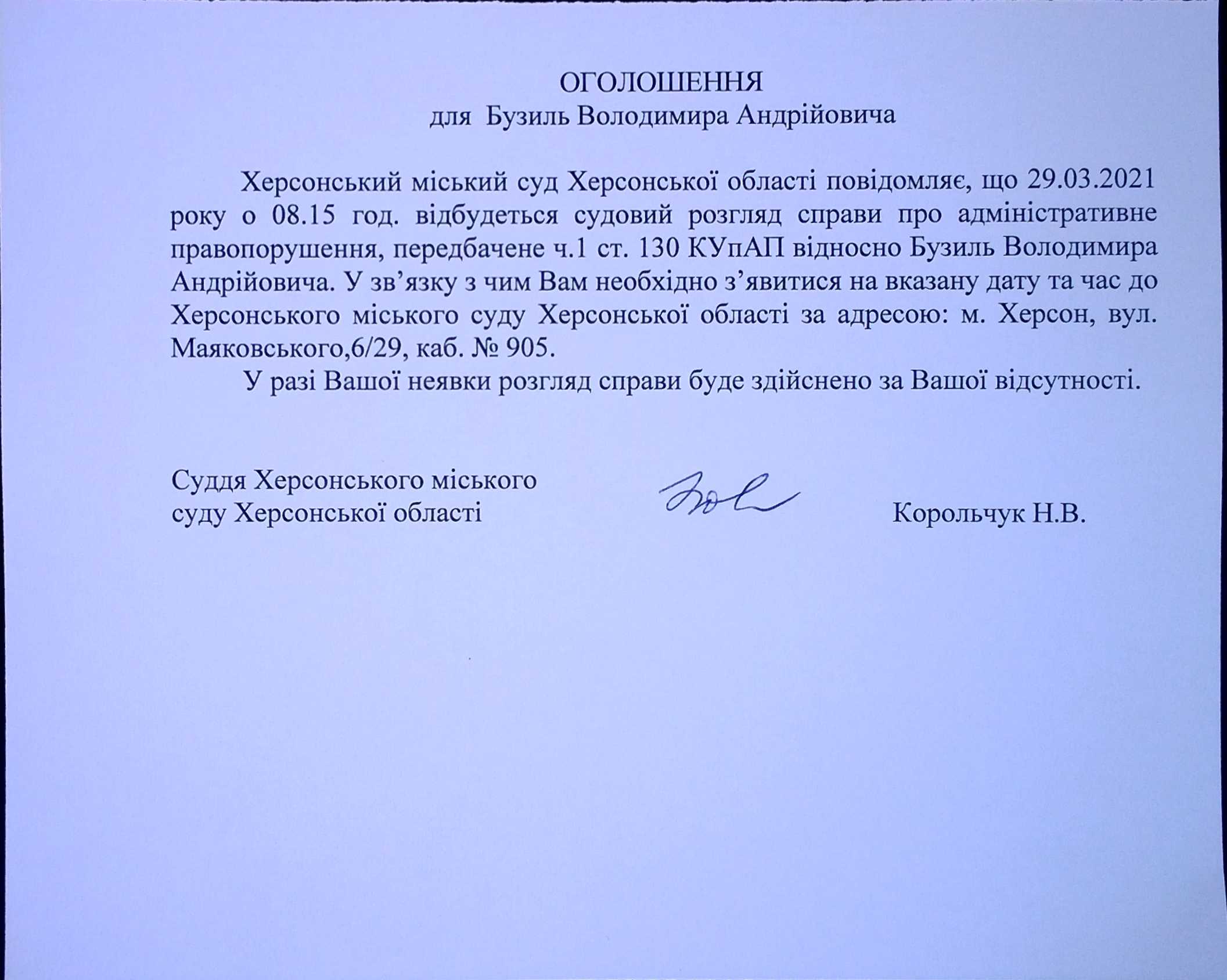 ОГОЛОШЕННЯ для Бузиль Володимира Андрійовича