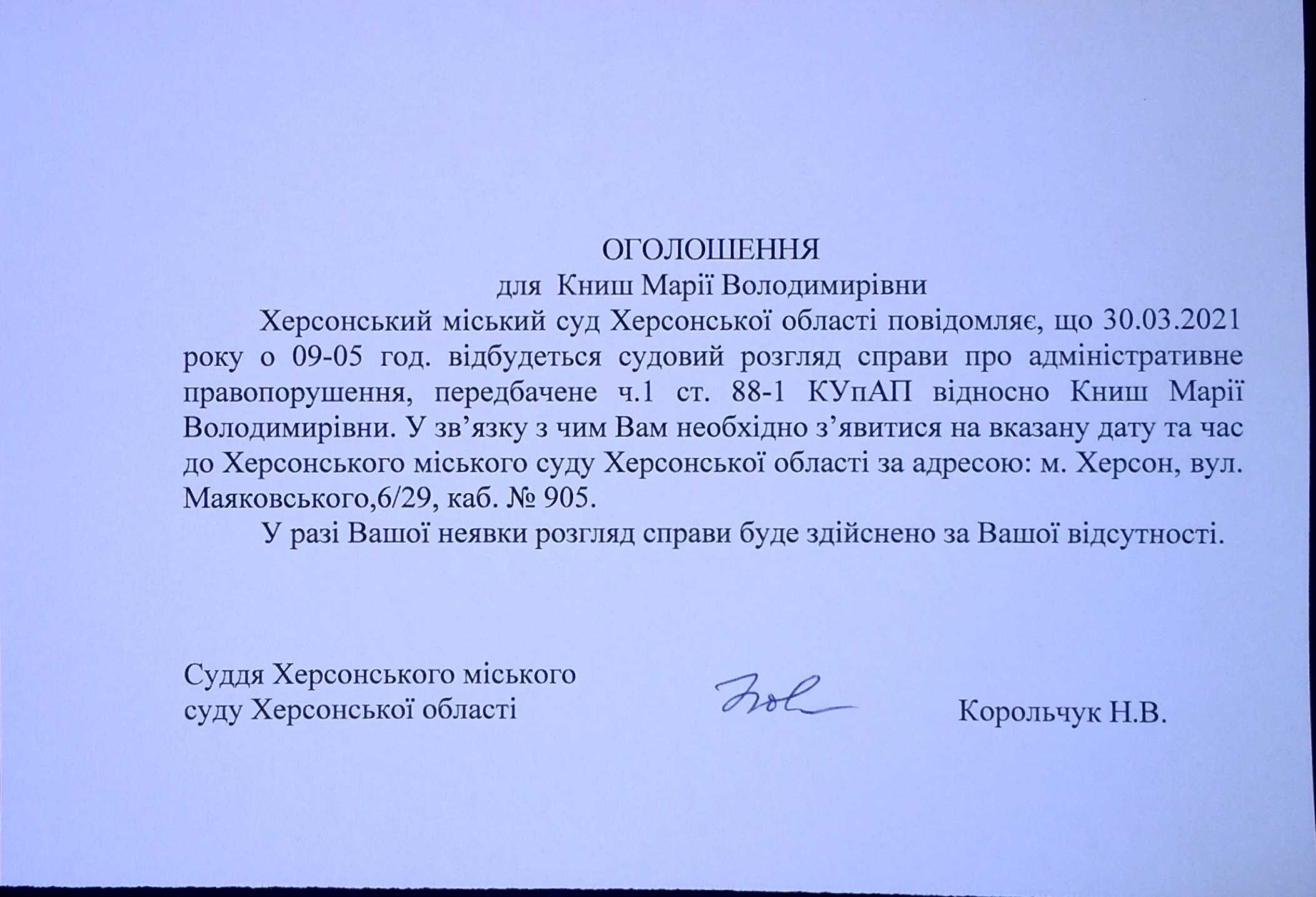 ОГОЛОШЕННЯ ПРО ВИКЛИК ДО СУДУ