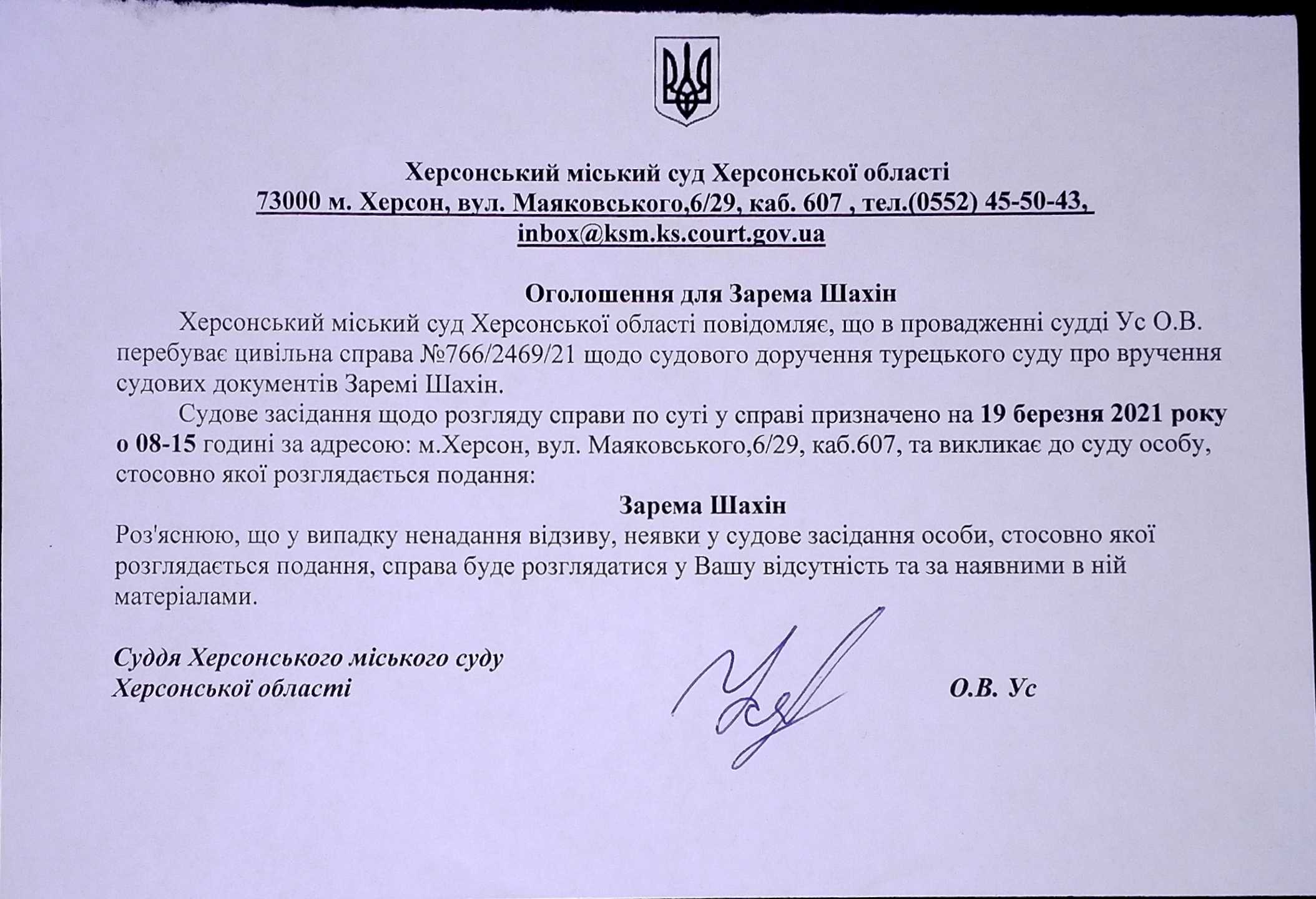 ОГОЛОШЕННЯ для Зарема Шахін