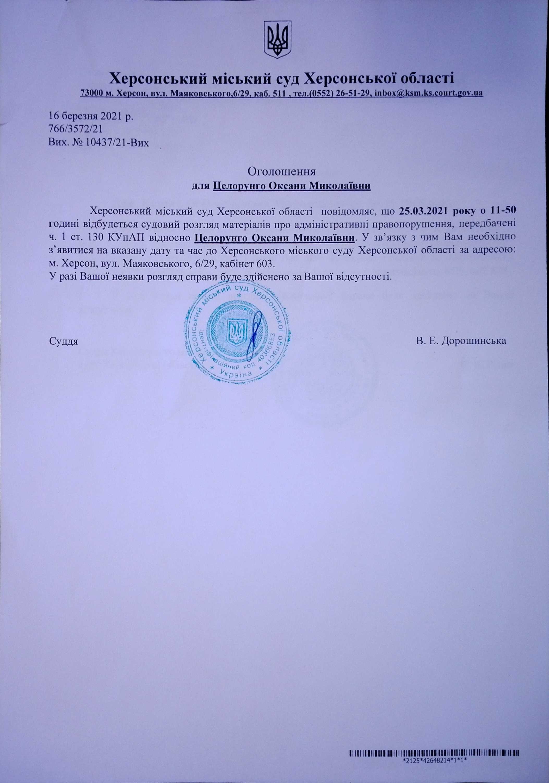 ОГОЛОШЕННЯ для Целорунго Оксани Миколаївни