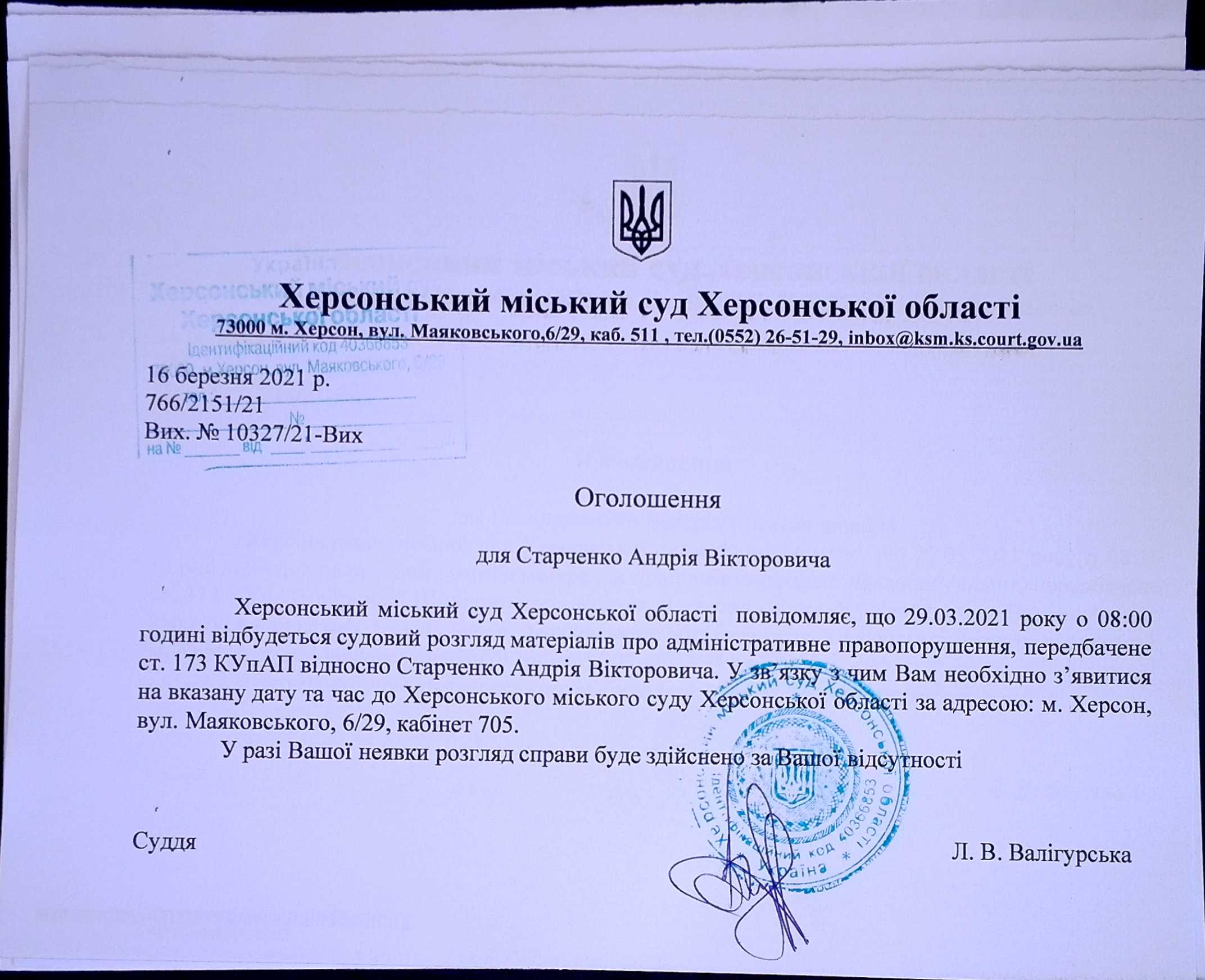 ОГОЛОШЕННЯ для Старченко Андрія Вікторовича