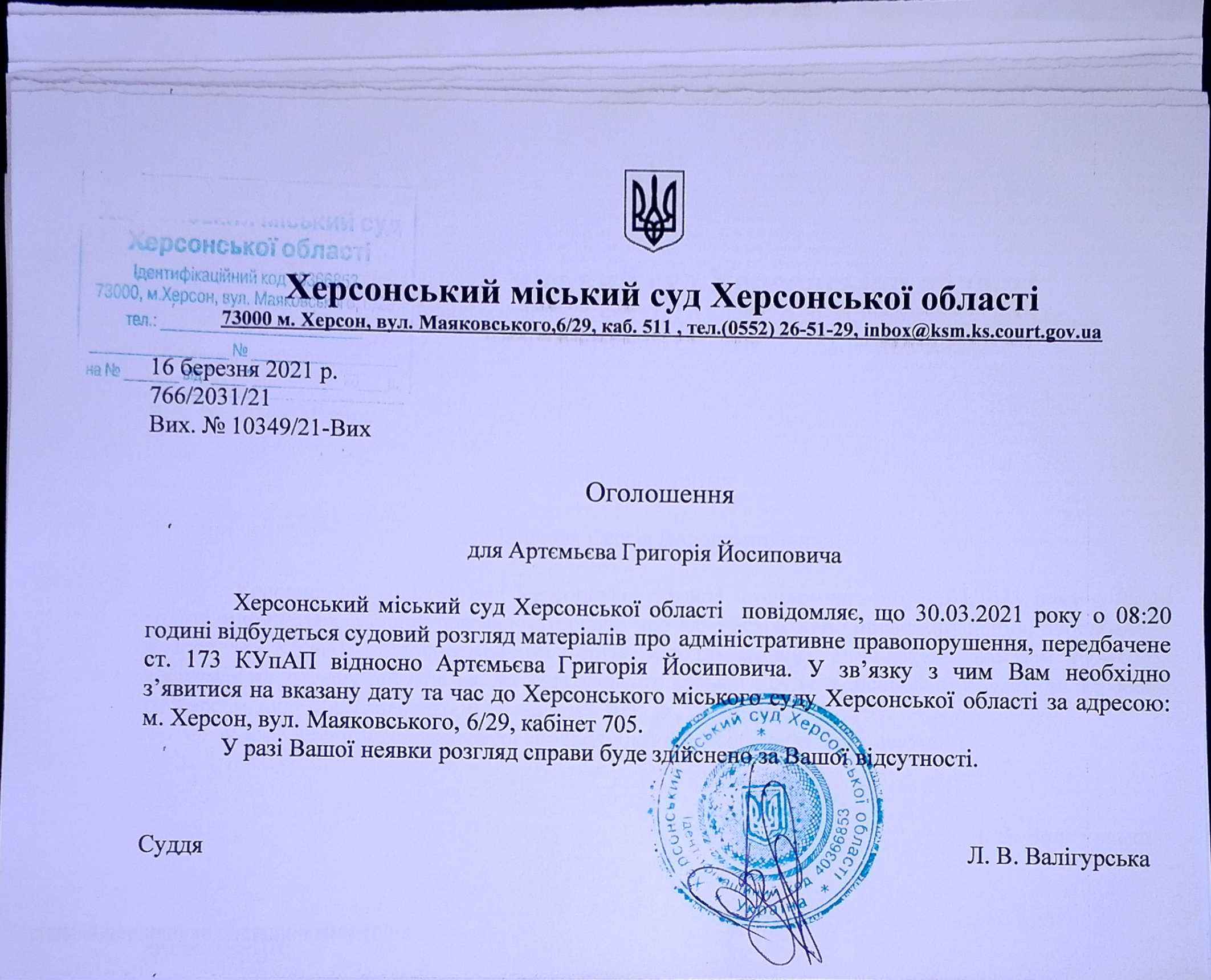 ОГОЛОШЕННЯ для Артемьєва Григорія Йосиповича