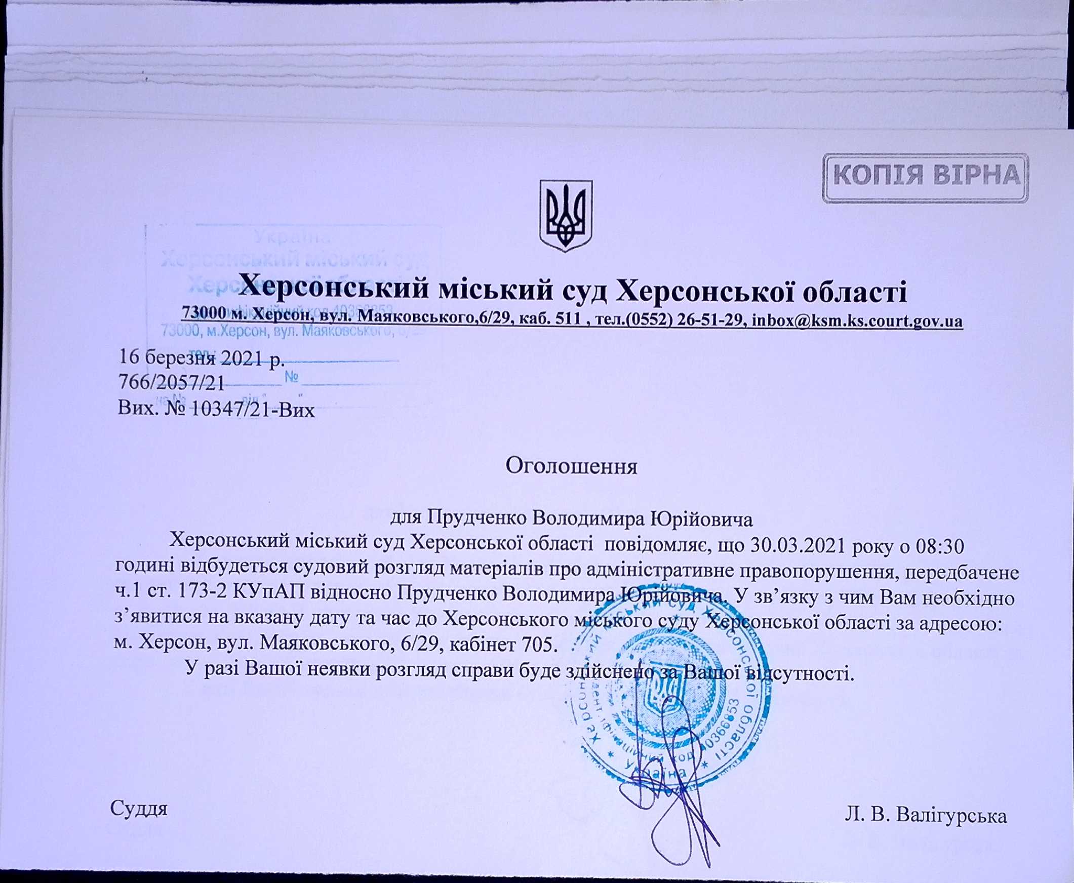 ОГОЛОШЕННЯ ПРО ВИКЛИК ДО СУДУ