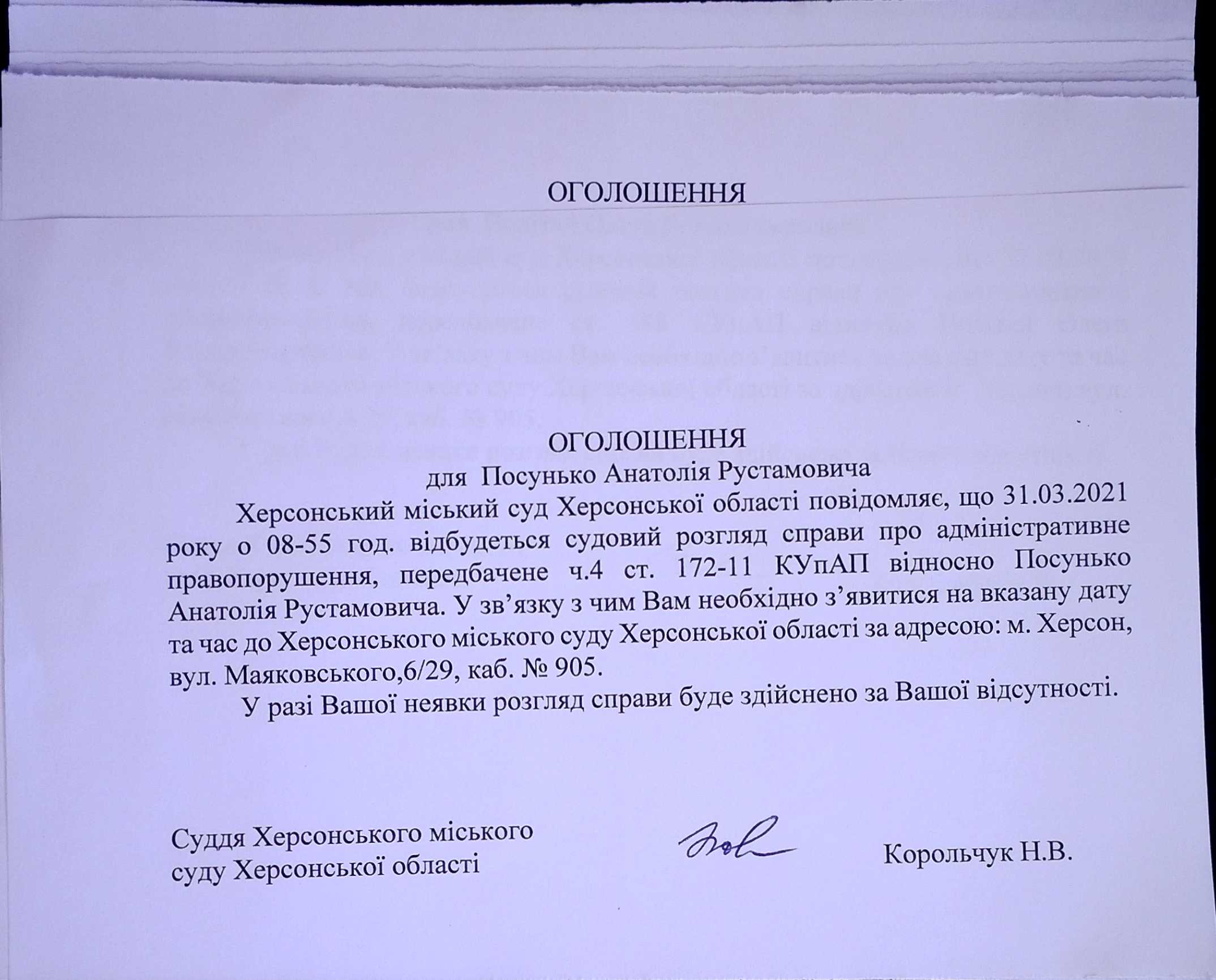 ОГОЛОШЕННЯ для Посунько Анатолія Рустамовича