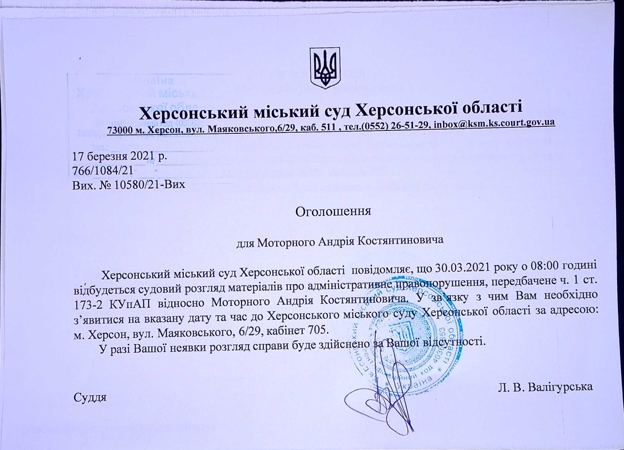 ОГОЛОШЕННЯ для Моторного Андрія Костянтиновича