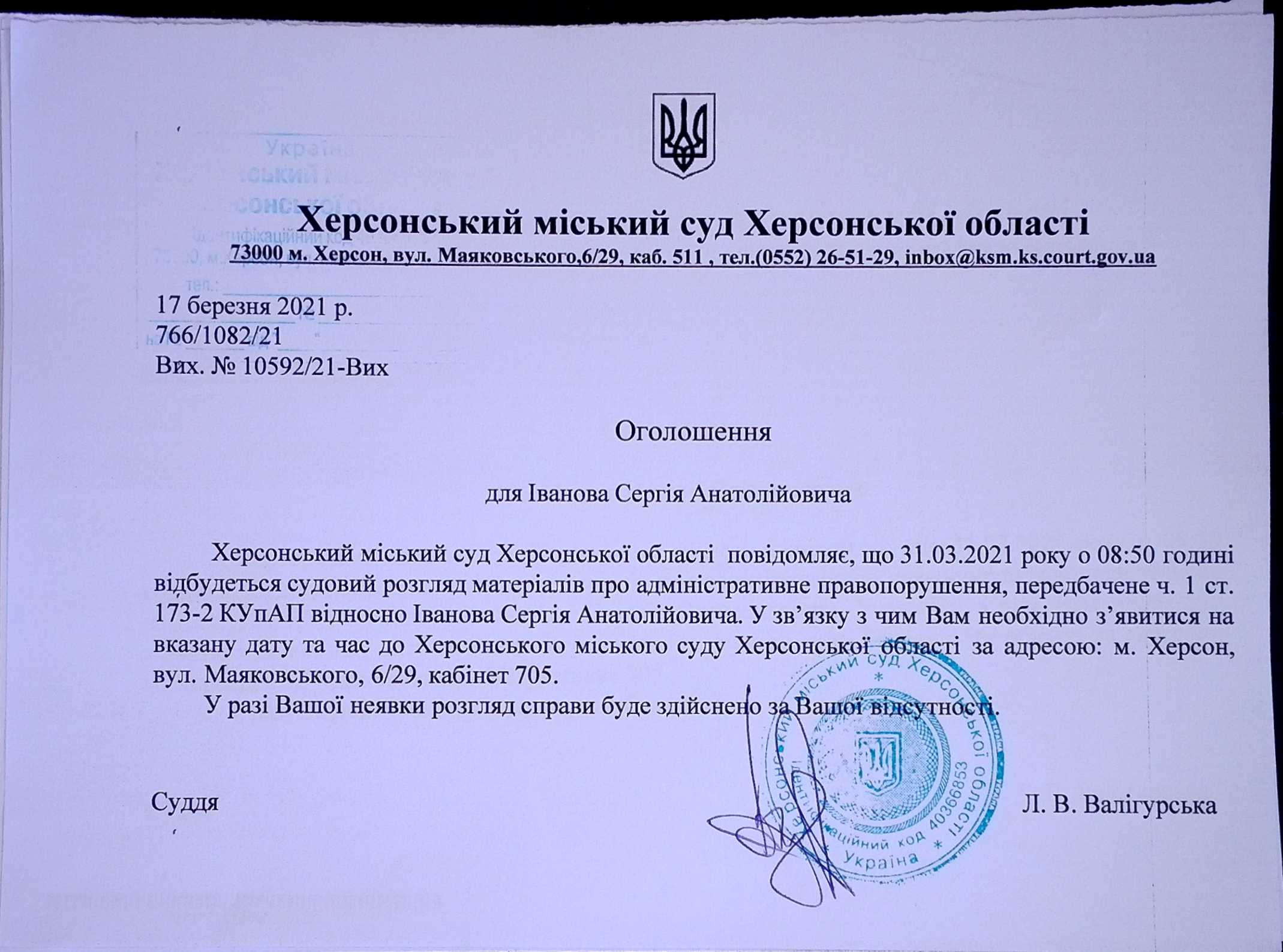 ОГОЛОШЕННЯ для Іванова Сергія Анатолійовича