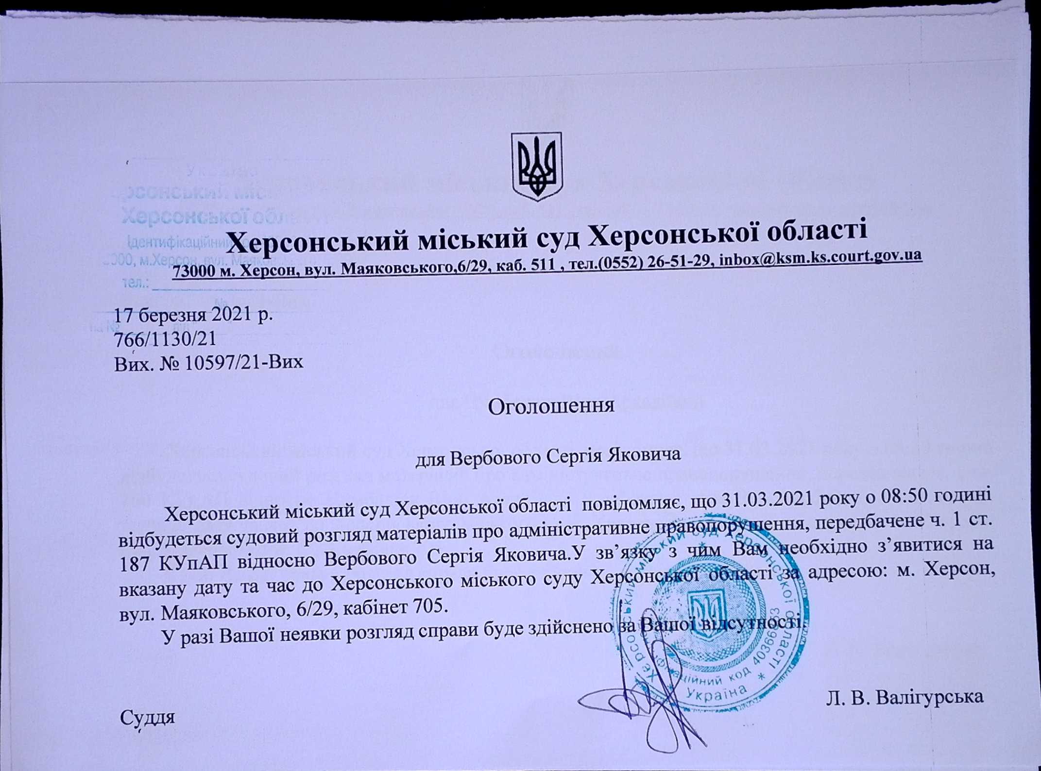 ОГОЛОШЕННЯ ПРО ВИКЛИК ДО СУДУ