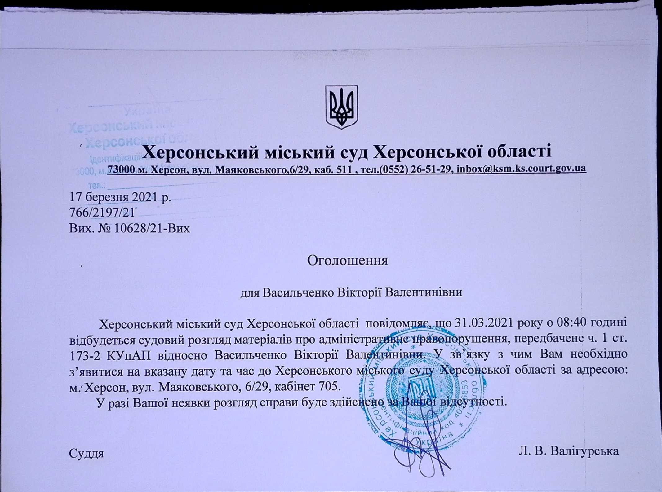 ОГОЛОШЕННЯ для Васильченко Вікторії Валентинівни