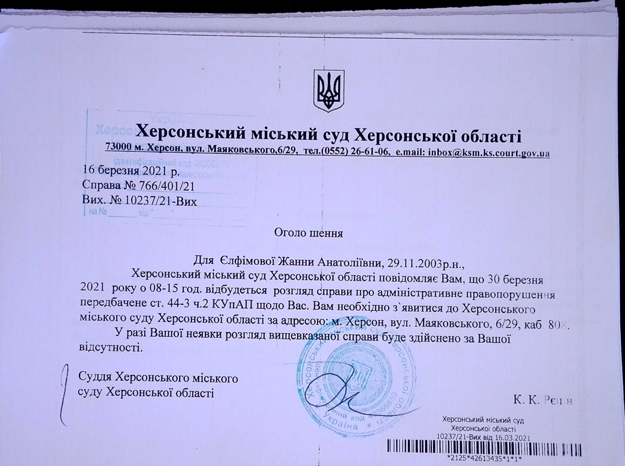 ОГОЛОШЕННЯ для Єлфімової Жанни Анатоліївни