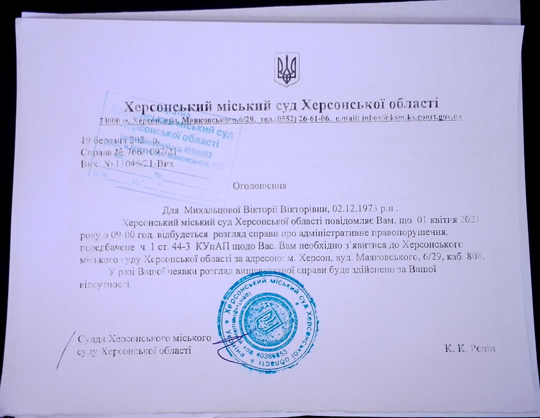 ОГОЛОШЕННЯ для Михальцової Вікторії Вікторівни