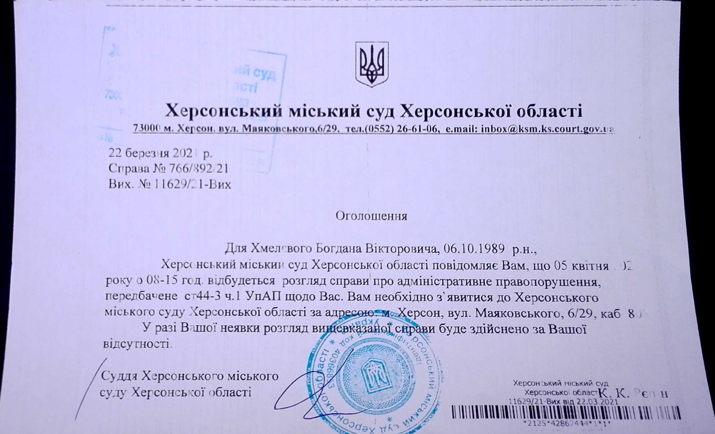 ОГОЛОШЕННЯ ПРО ВИКЛИК ДО СУДУ