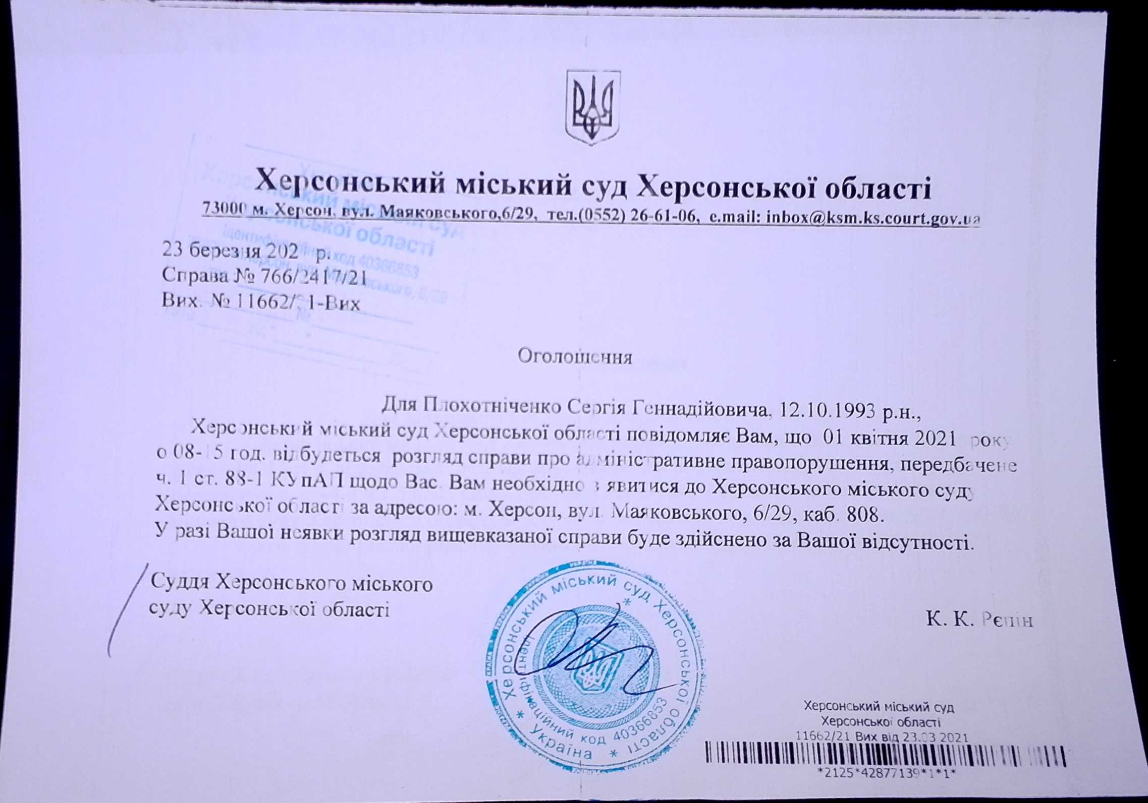 ОГОЛОШЕННЯ для Плохотніченко Сергія Геннадійовича
