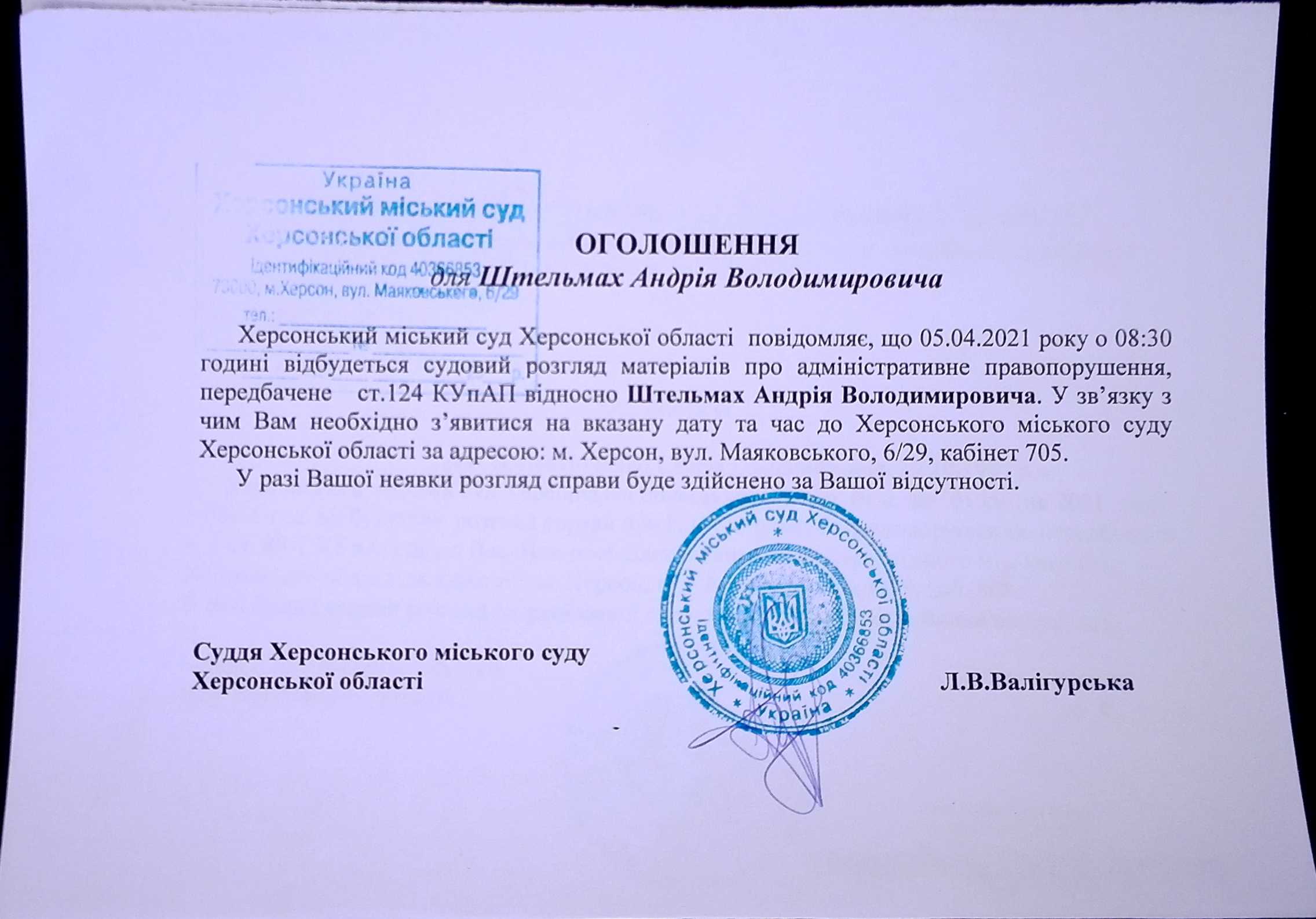 ОГОЛОШЕННЯ для Штельмах Андрія Володимировича