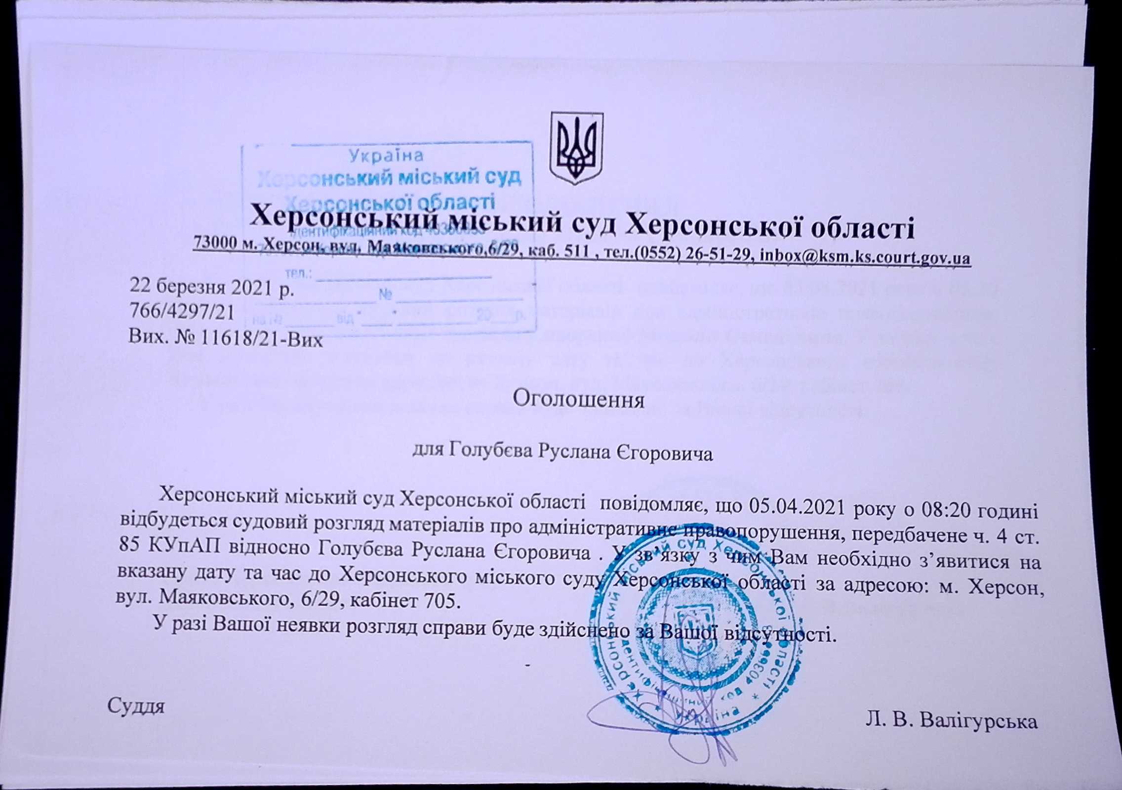 ОГОЛОШЕННЯ для Голубєва Руслана Єгоровича