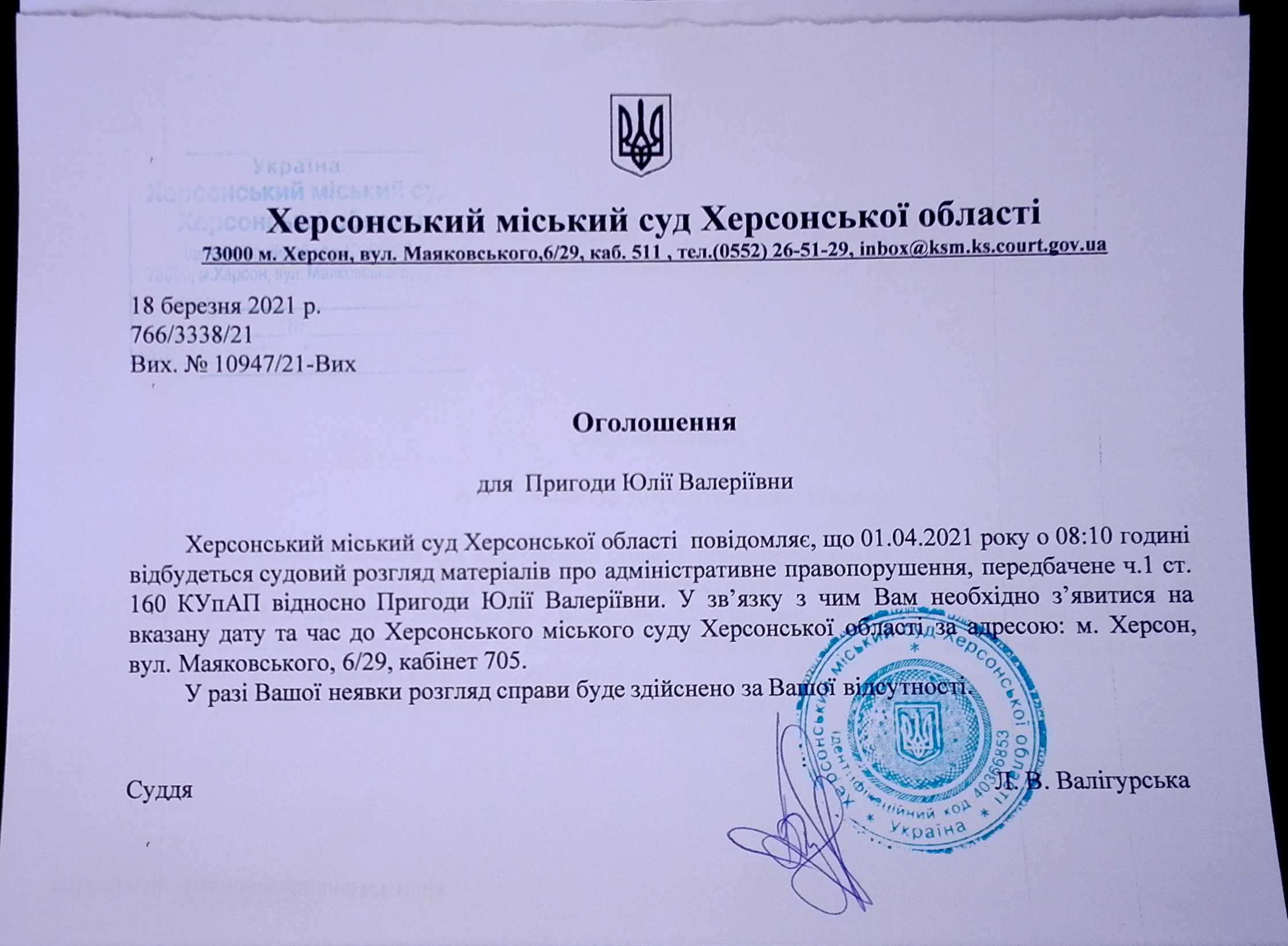 ОГОЛОШЕННЯ для Пригоди Юлії Валеріївни