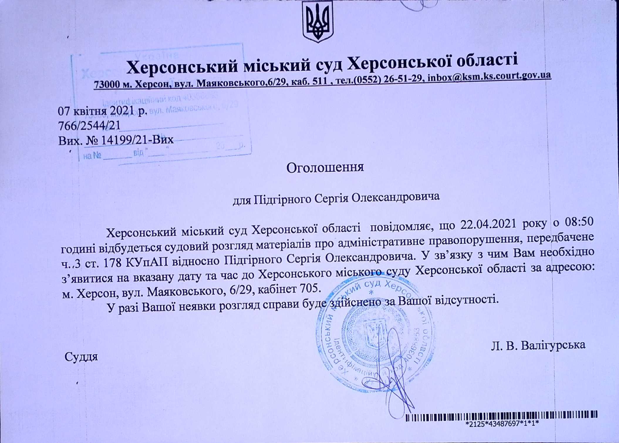 ОГОЛОШЕННЯ ПРО ВИКЛИК ДО СУДУ