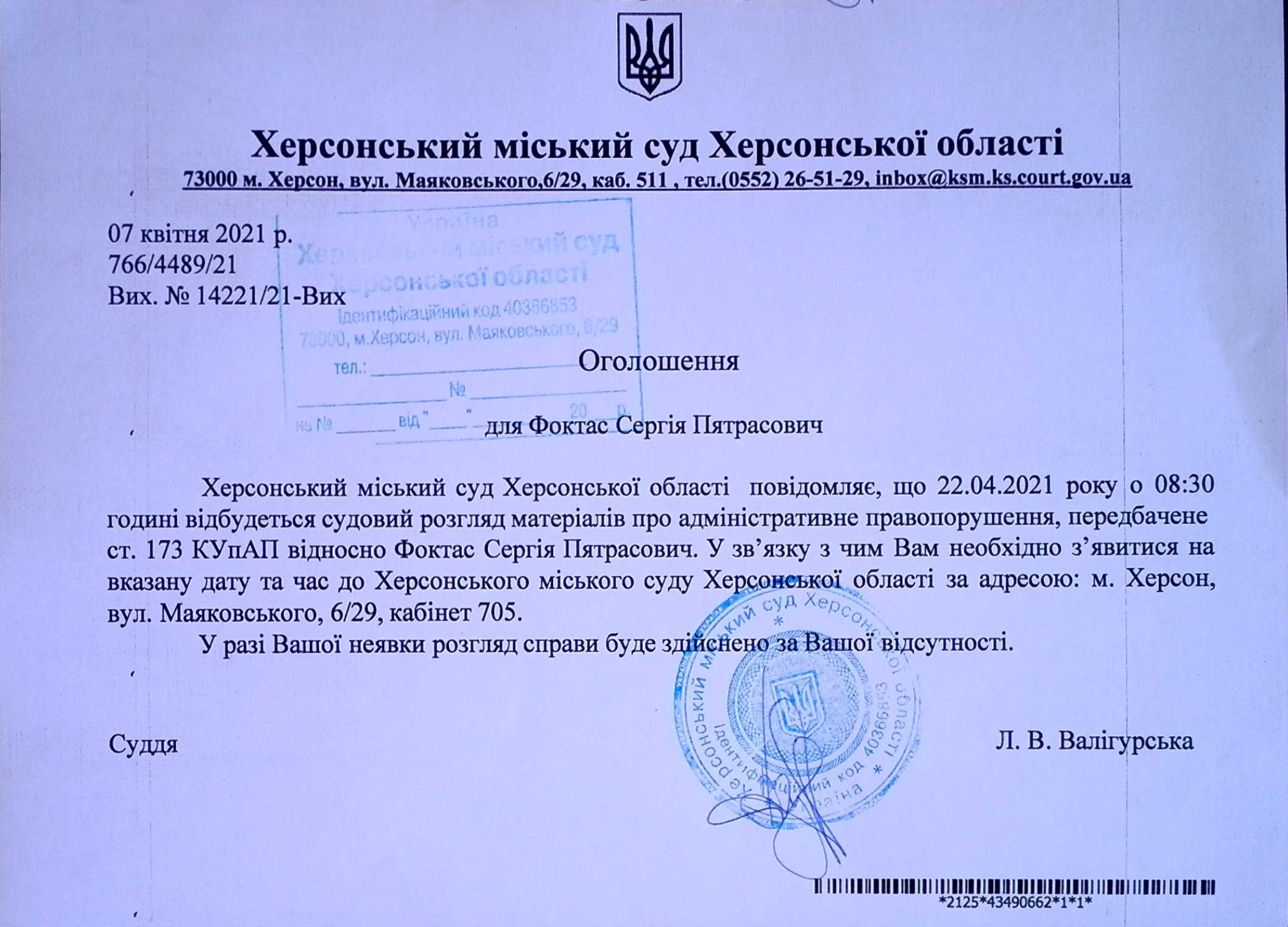 ОГОЛОШЕННЯ для Фоктас Сергія Пятрасовича