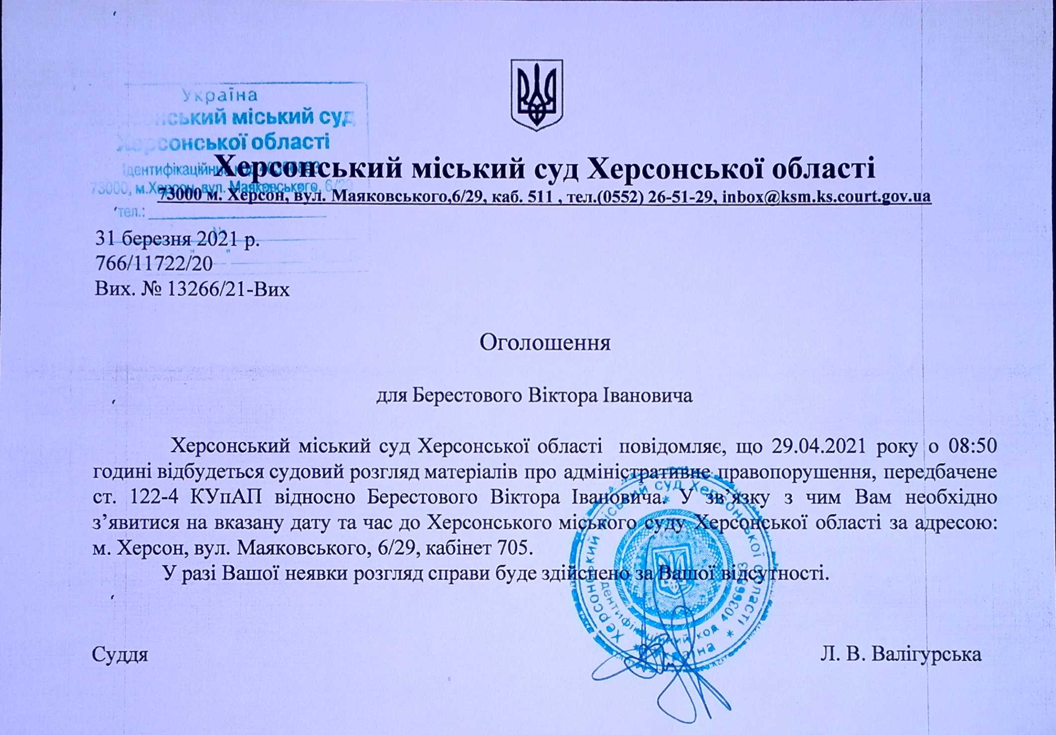 ОГОЛОШЕННЯ ПРО ВИКЛИК ДО СУДУ