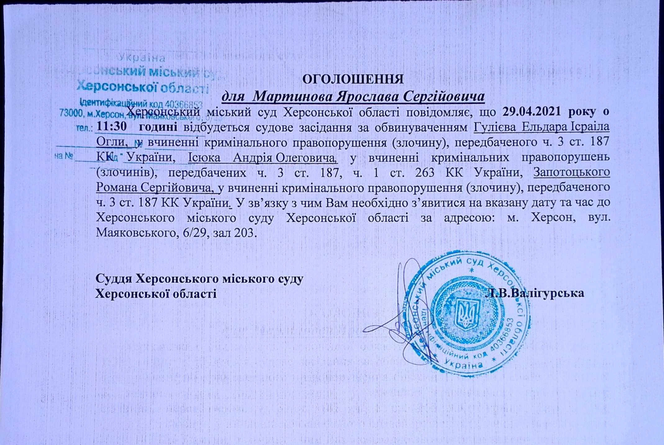 ОГОЛОШЕННЯ для Мартинова Ярослава Сергійовича