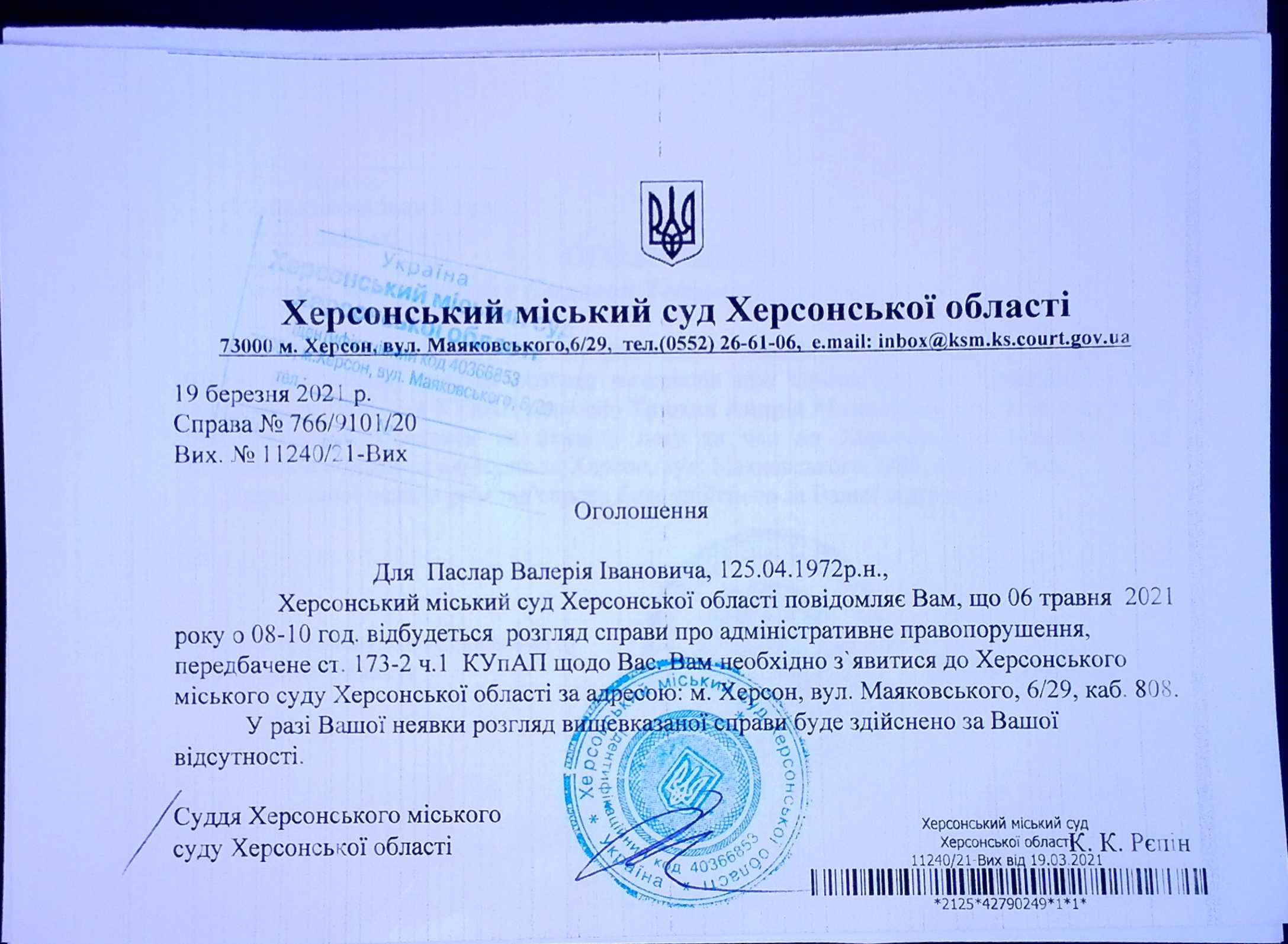 ОГОЛОШЕННЯ для Паслар Валерія Івановича