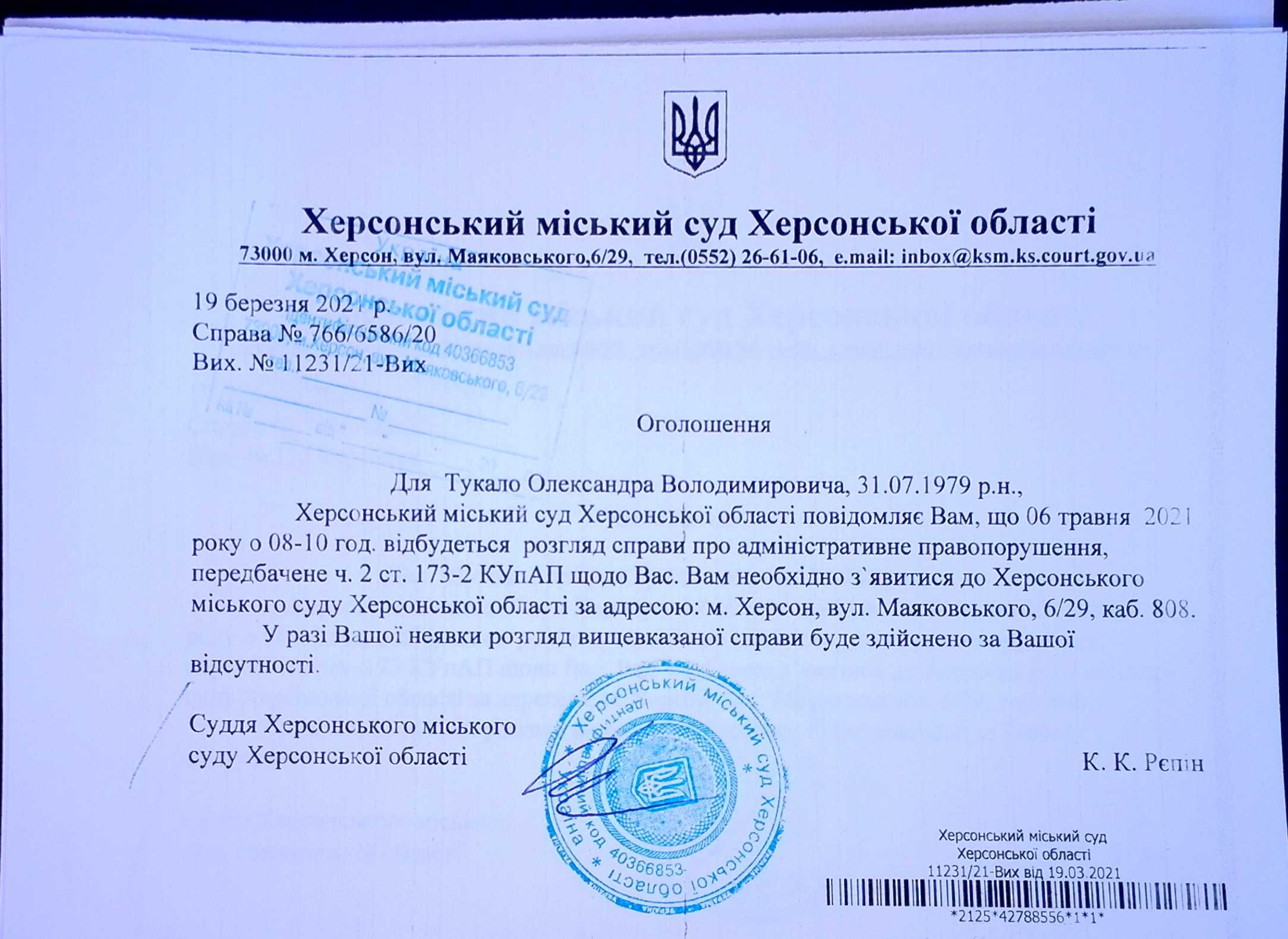 ОГОЛОШЕННЯ для Тукало Олександра Володимировича
