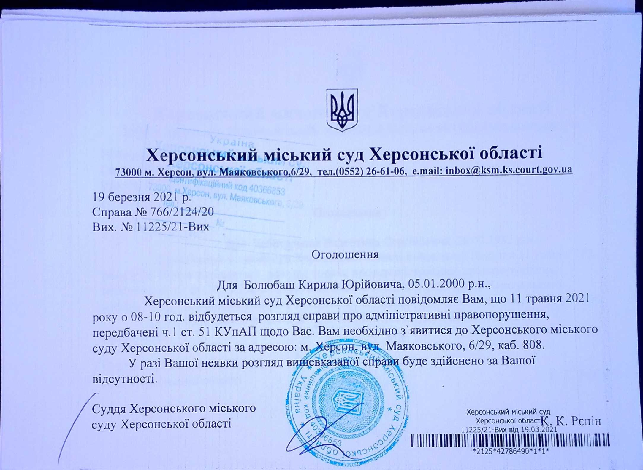 ОГОЛОШЕННЯ для Болюбаш Кирила Юрійовича