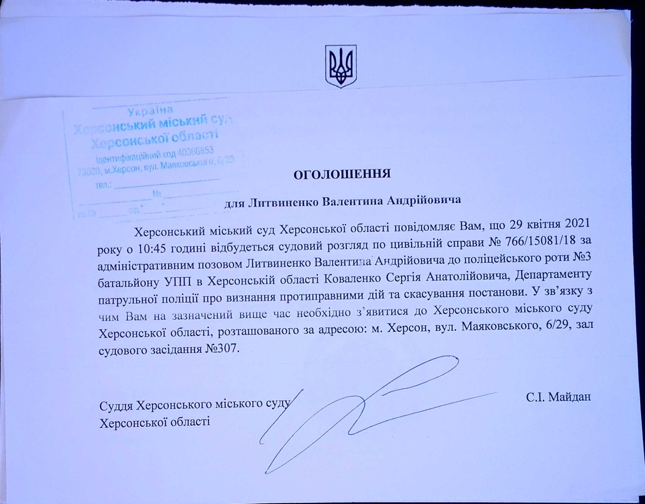 ОГОЛОШЕННЯ ПРО ВИКЛИК ДО СУДУ