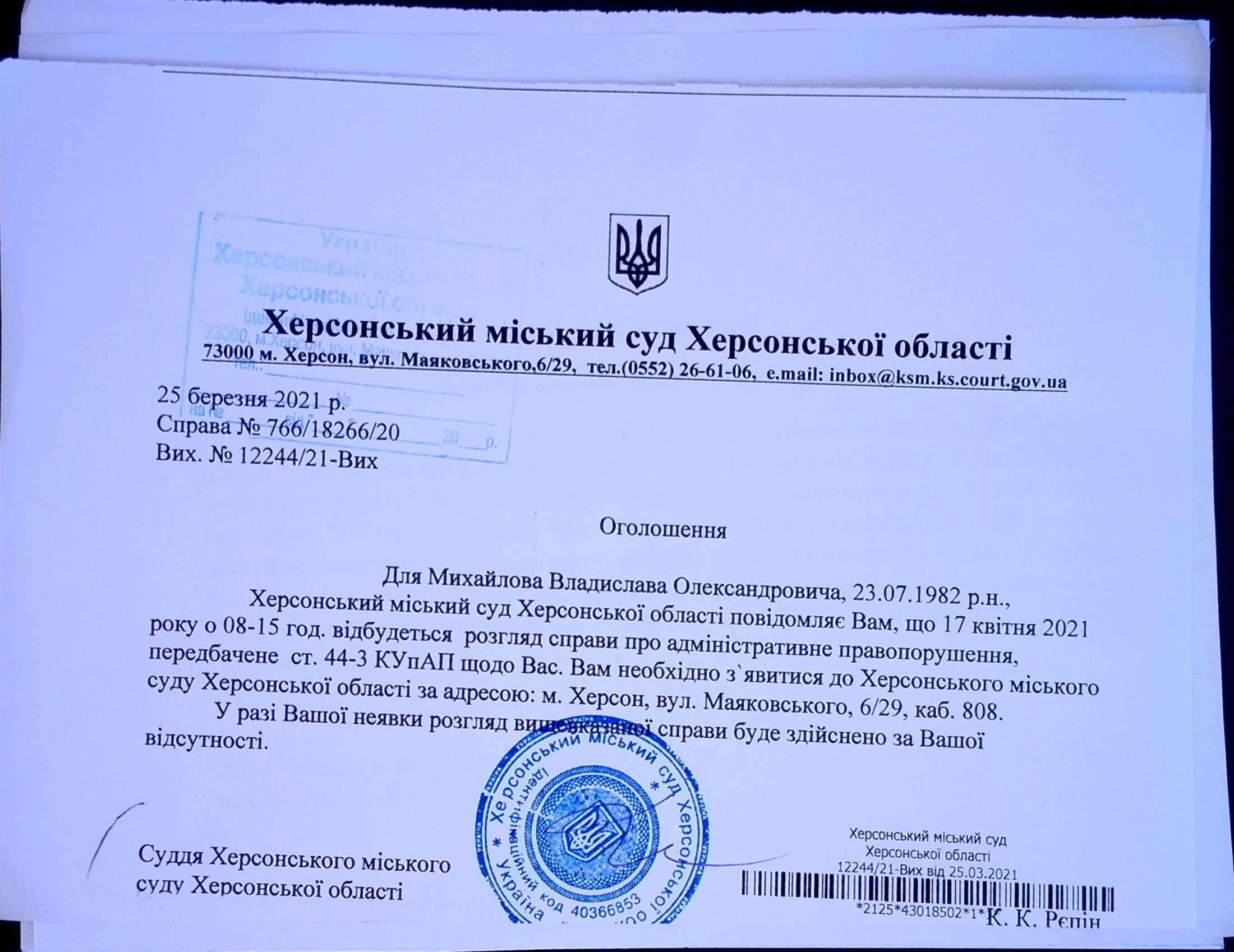 ОГОЛОШЕННЯ для Михайлова Владислава Олександровича