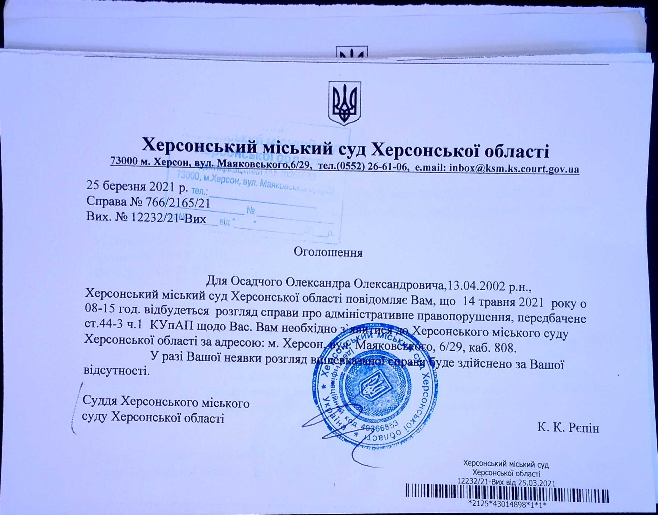 ОГОЛОШЕННЯ ПРО ВИКЛИК ДО СУДУ