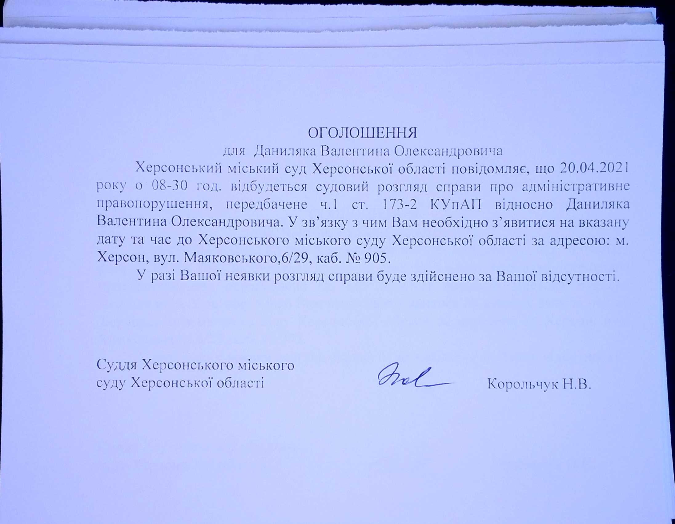 ОГОЛОШЕННЯ для Даниляк Валентина Олександровича